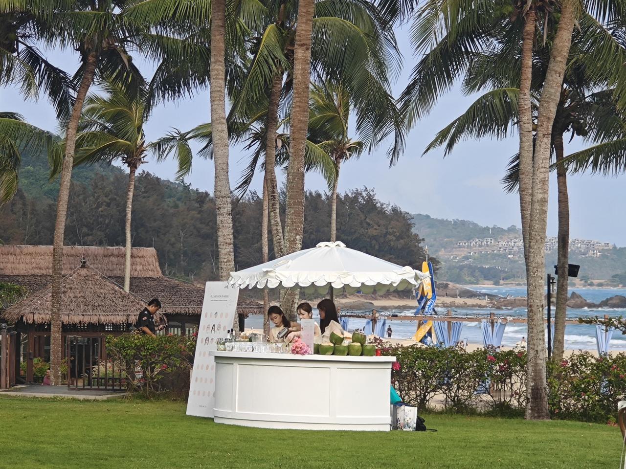 昨天在石梅湾,遇见一个草坪婚礼现场。 婚礼规模不是很大,但场景很简单、明快、喜