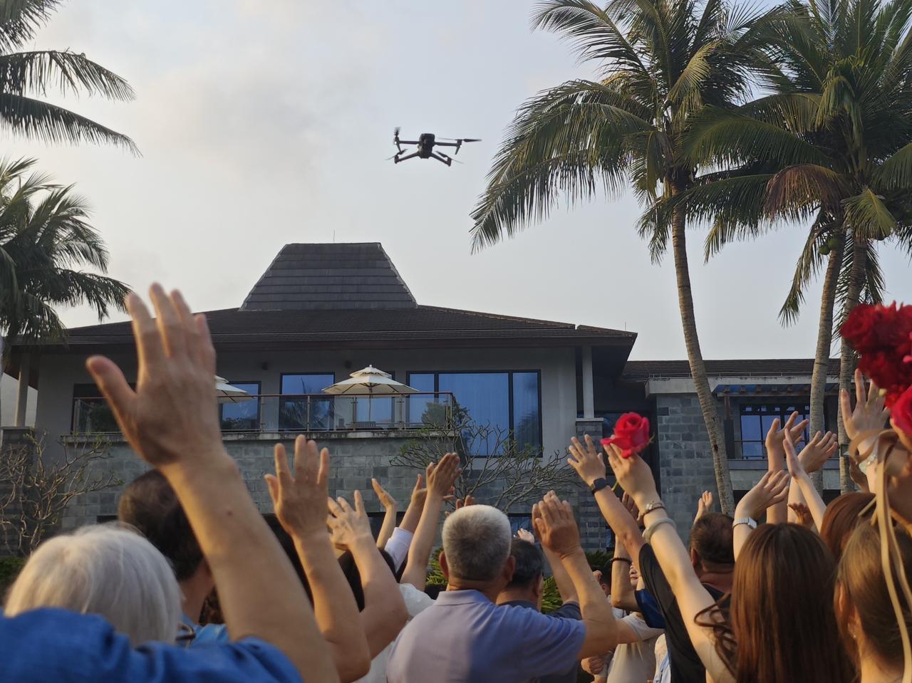 来宾们面朝大海,听着涛声,见证新人的幸福时刻。