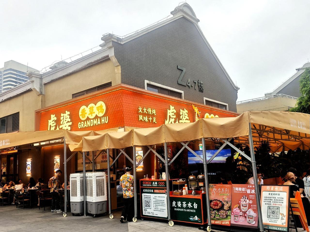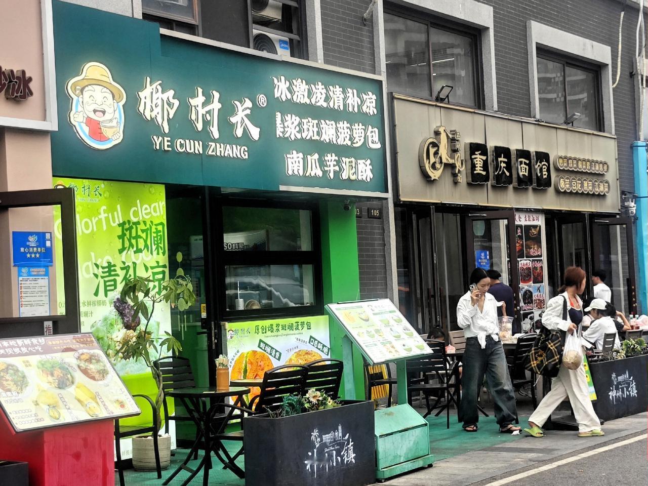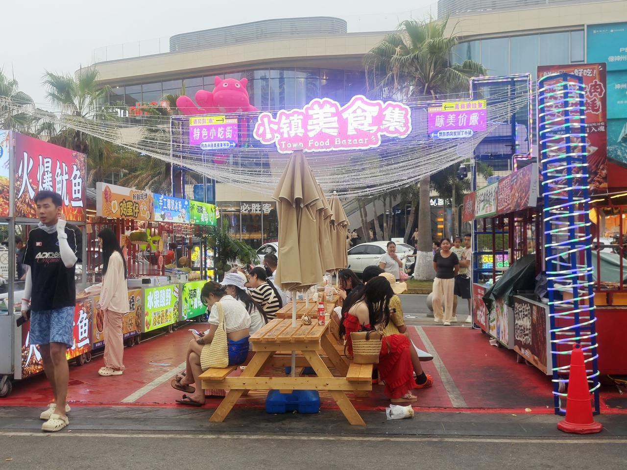 傍晚,小镇美食集拉开帷幕。湘菜、川菜、东北菜、海南菜……各种不同的风味菜肴,在小街上交汇融合。