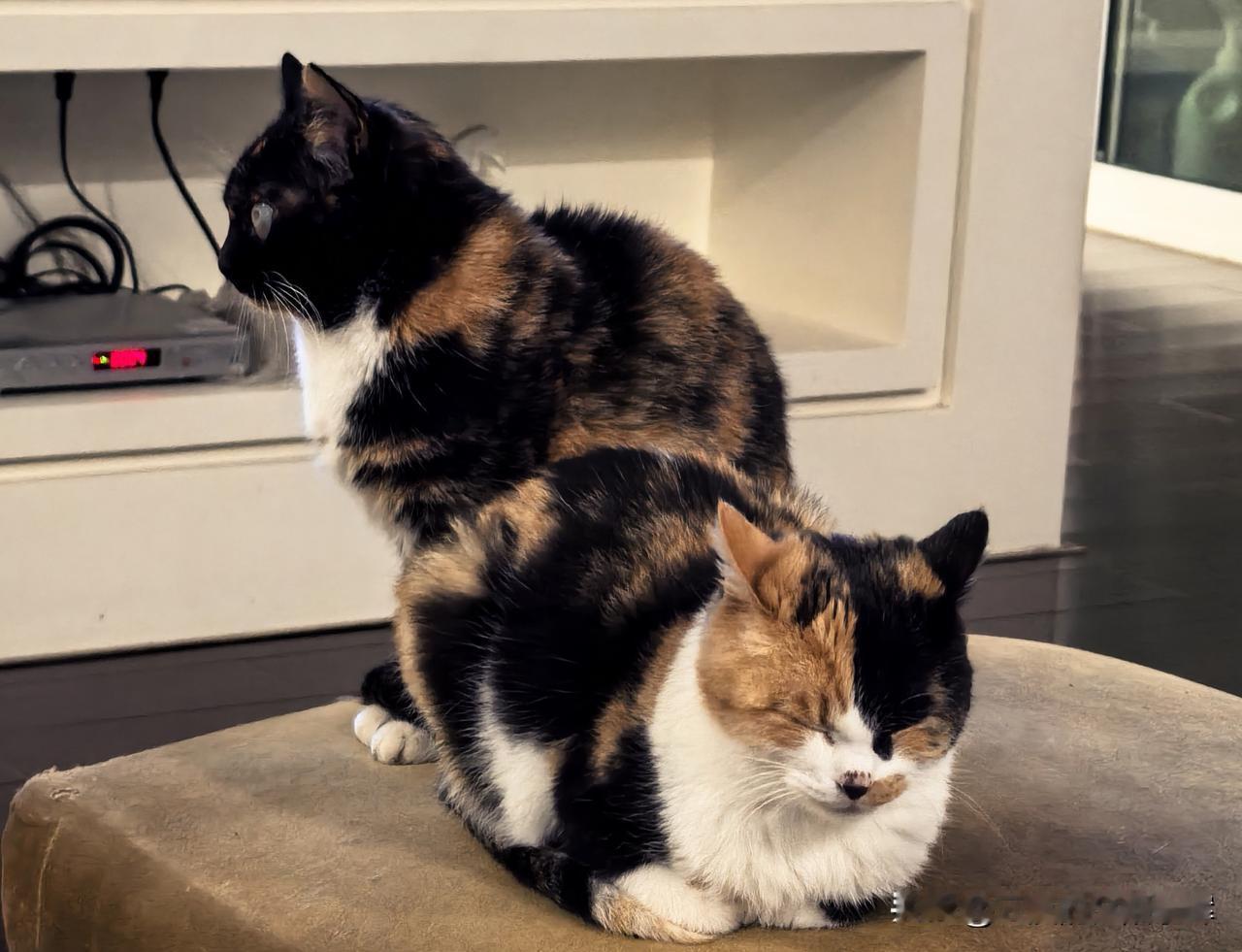 我坐在沙发上看电视,两只三花小宝贝一前一后挨了过来。 一只好奇地盯着屏幕;另一只望着我,直至蜷成一团,在我跟前打起了小呼噜。 它们就这般安安静静地陪伴着,不吵不闹,让整个屋子都盈满了温暖。 这真是屏幕有剧情,身边有温柔啊。