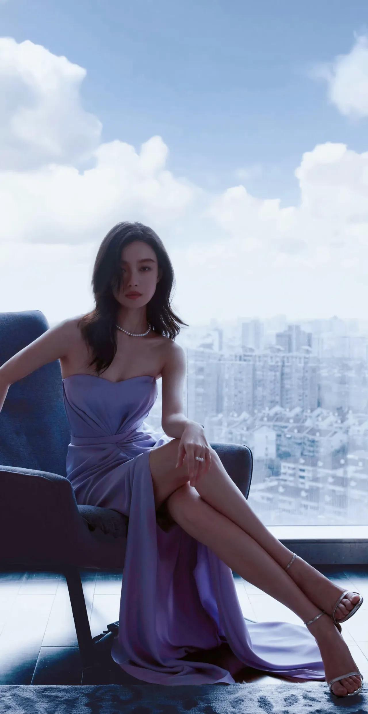 美女壁纸~倪妮,一袭雾紫抹胸长裙,勾勒出舒展的肩颈线条,珍珠项链衬得气质愈发清冷贵气