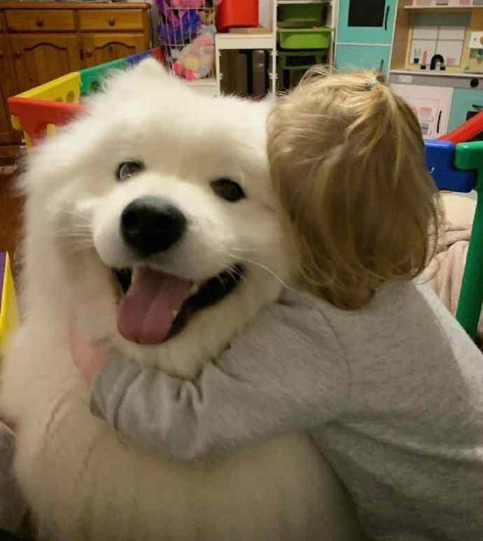 上了一天学的人类幼崽正在补充小狗能量