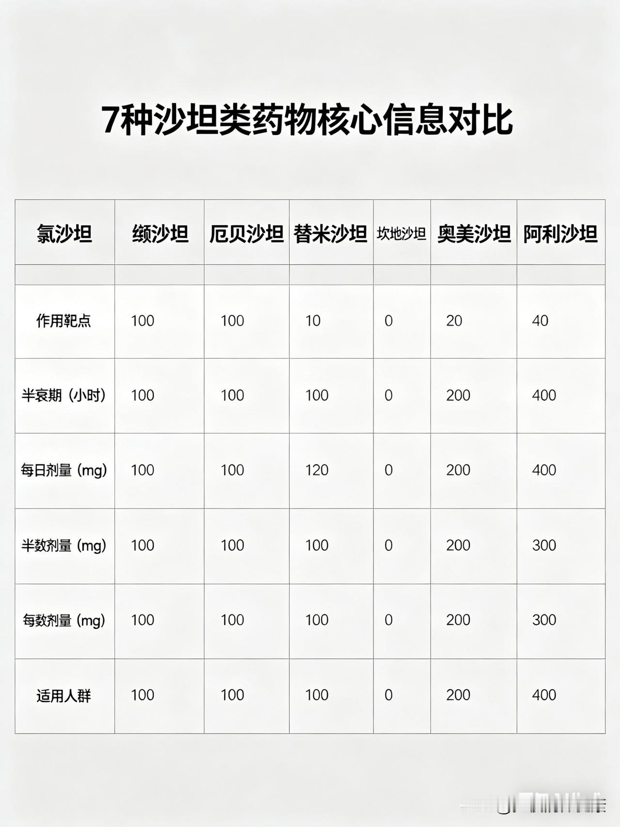 高血压选沙坦,别纠结!7种常用药核心区别,极简清单版👇 ⚠️ 重要提醒: