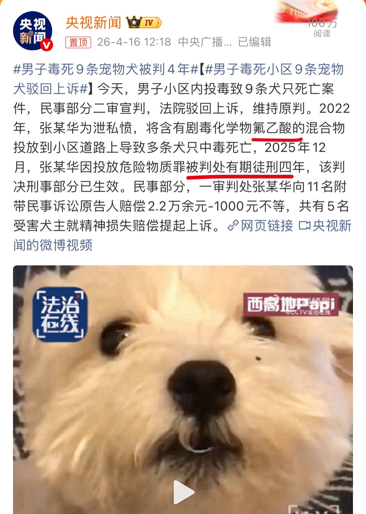 男子毒死9条宠物犬被判4年让我们来看三个新闻:北京毒死狗:判刑四年。上海毒死狗: