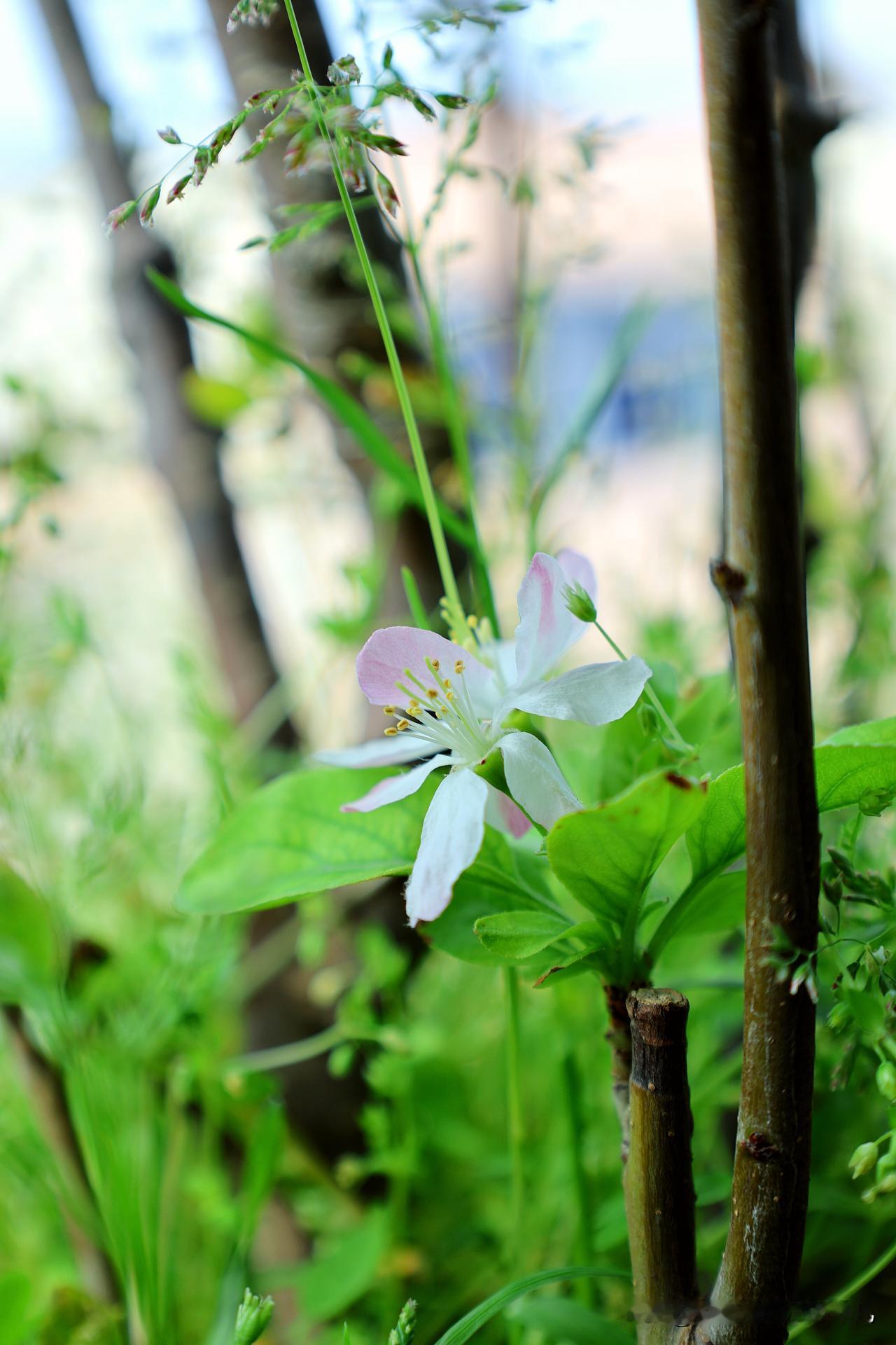 前年秋天在红海棠上嫁接了一个会结果子的今年开花了还有很多花苞,不知道能不能结果。