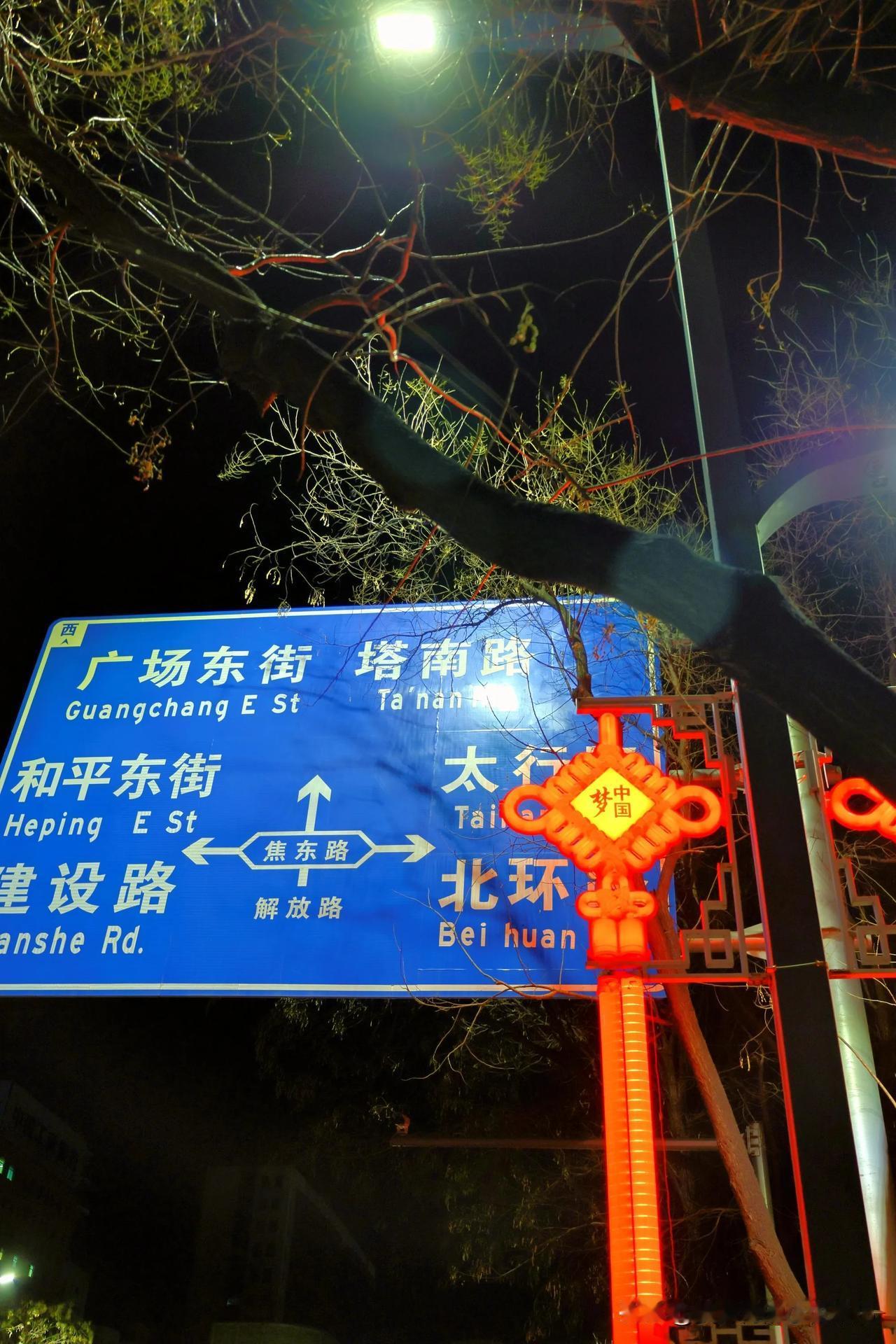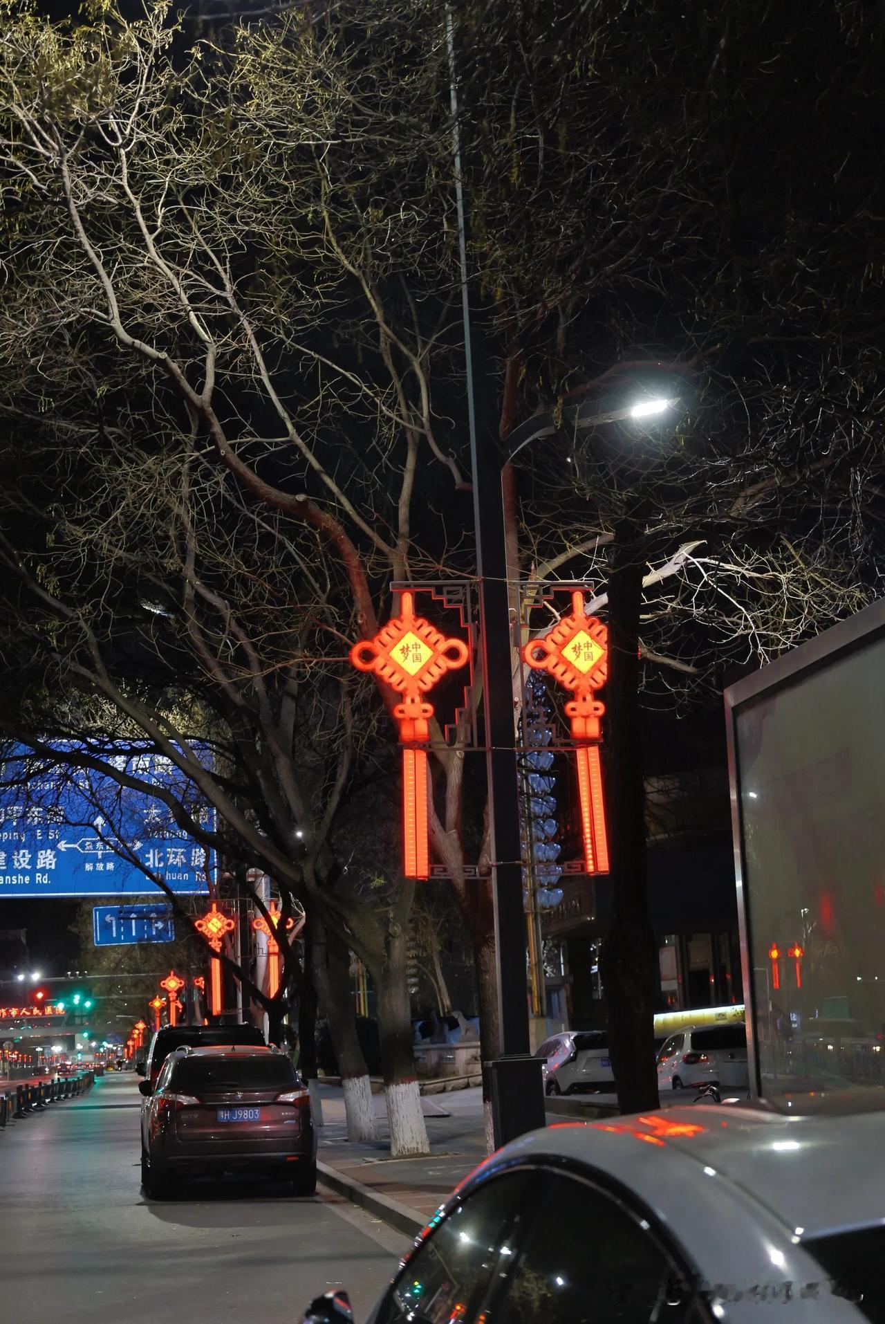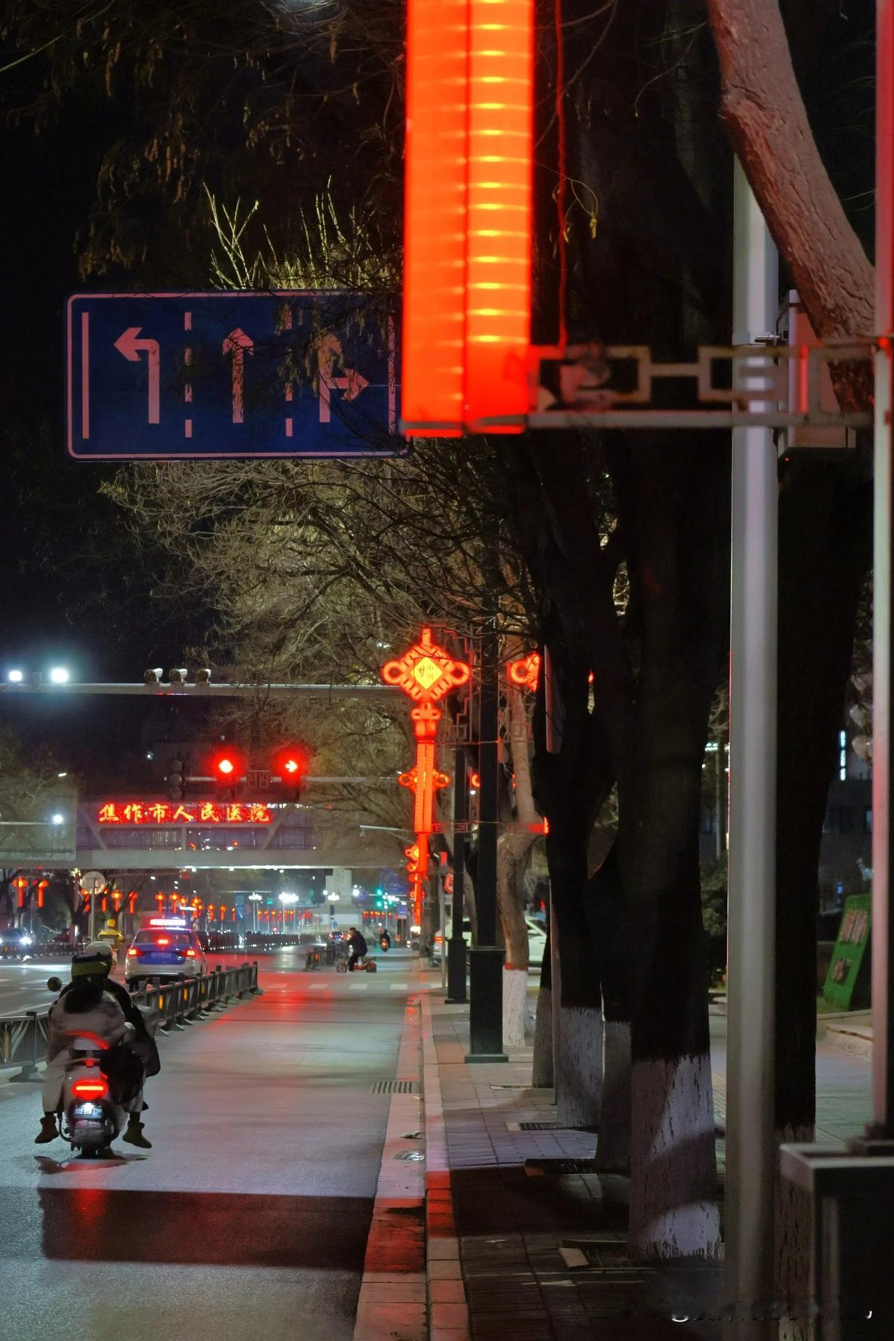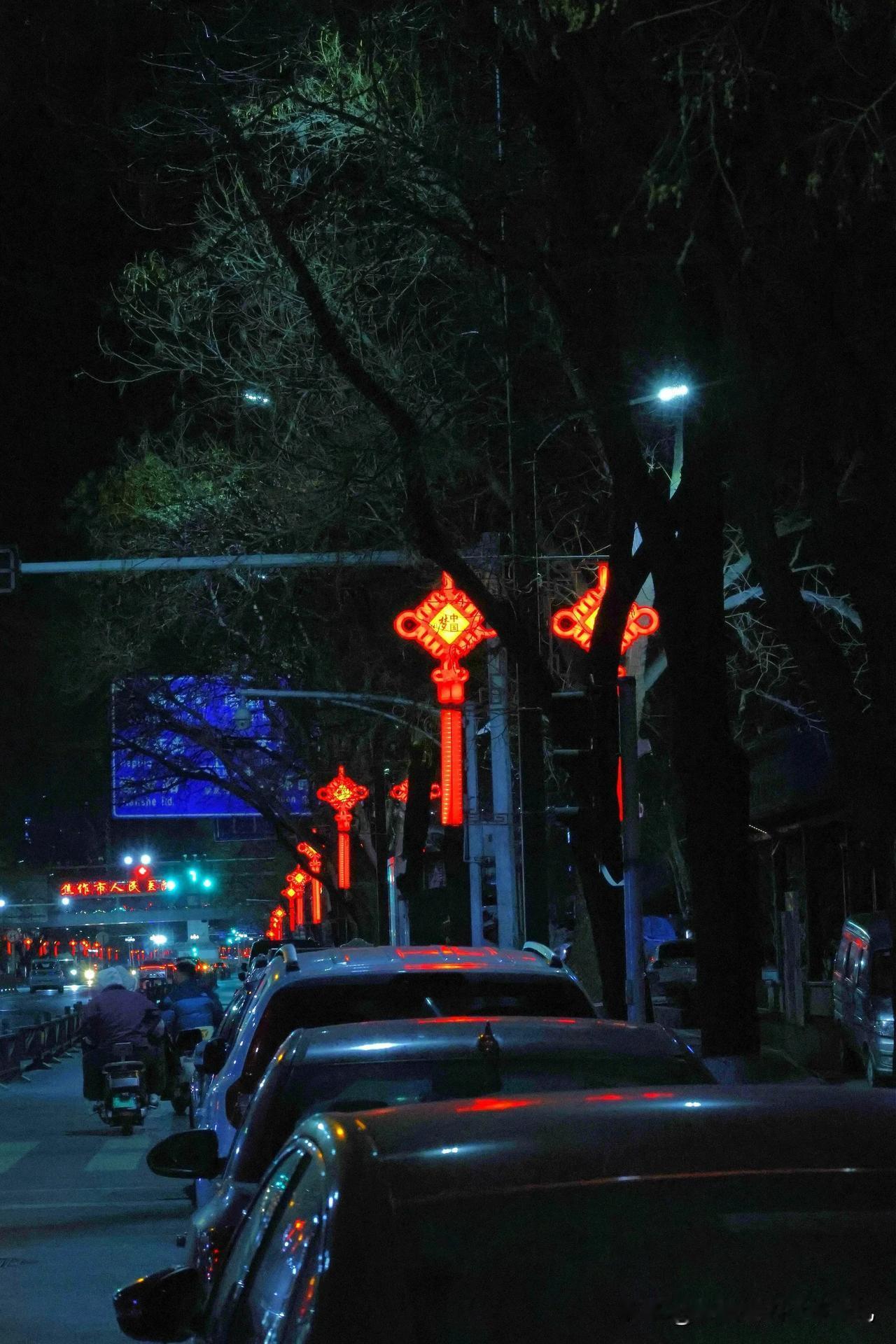 节日的街头被“”中国红”装扮的喜气洋洋照亮人们的回家路—晚安焦作 焦作城市风光