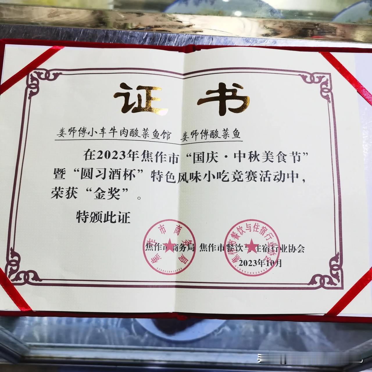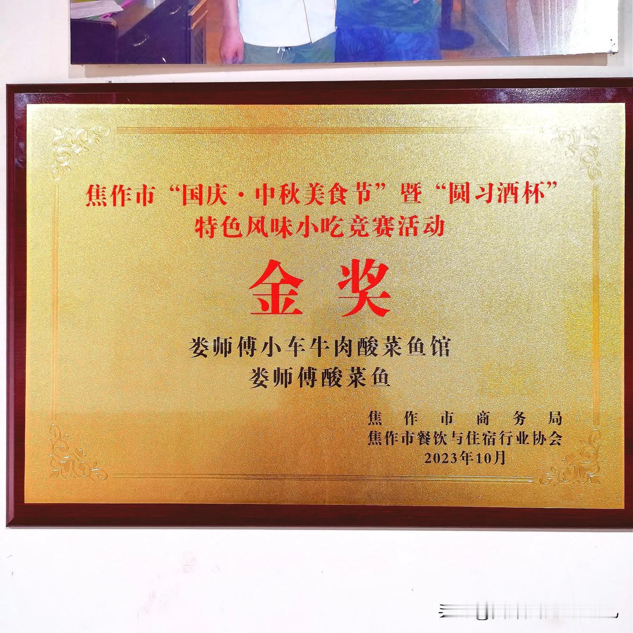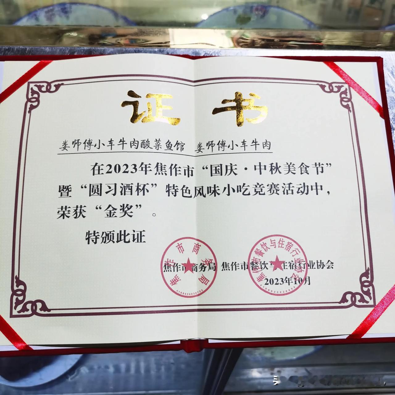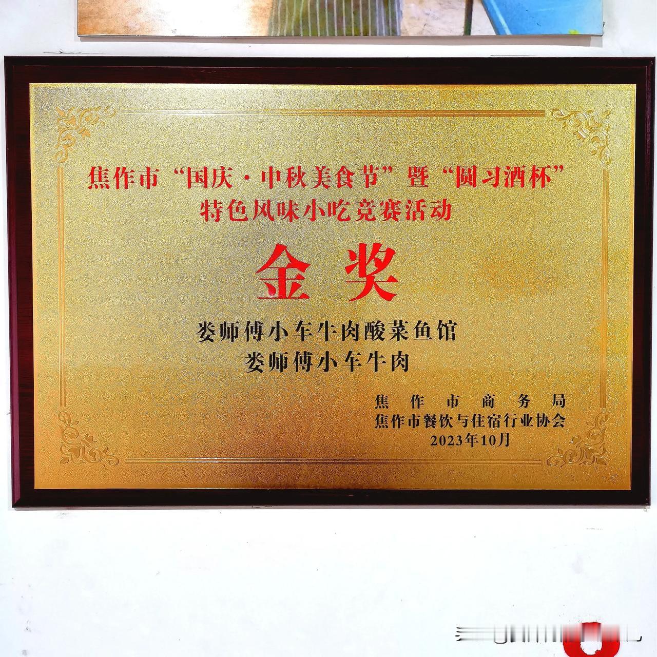 “娄师傅小车牛肉”和“娄师傅酸菜鱼”喜获焦作市“国庆.中秋美食节”特色风味小吃竞赛金奖[击掌][击掌][击掌] 娄师傅小车牛肉 小车牛肉 河南