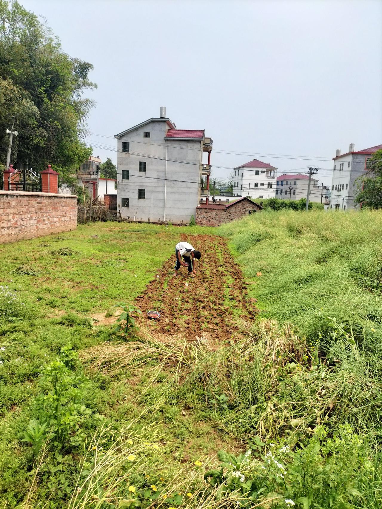 今天我一个人播种花生非常累,从早上7点钟我就起床,一直忙,我是蹲着把这一大片都地都种完了,最后膝盖都直不起来了,因为今天是周末,我要种完花生下午赶回县城租房,明天我儿子要上学。