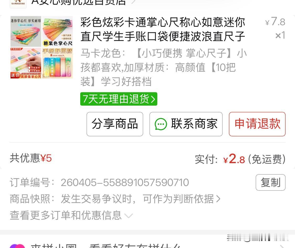 前天宝儿又咋呼尺子丢了,我看到这种限时优惠5元倒计时的掌心称心如意迷你直尺,看都没看就直接下单买了十把,想着丢就丢吧,几毛钱的事情。