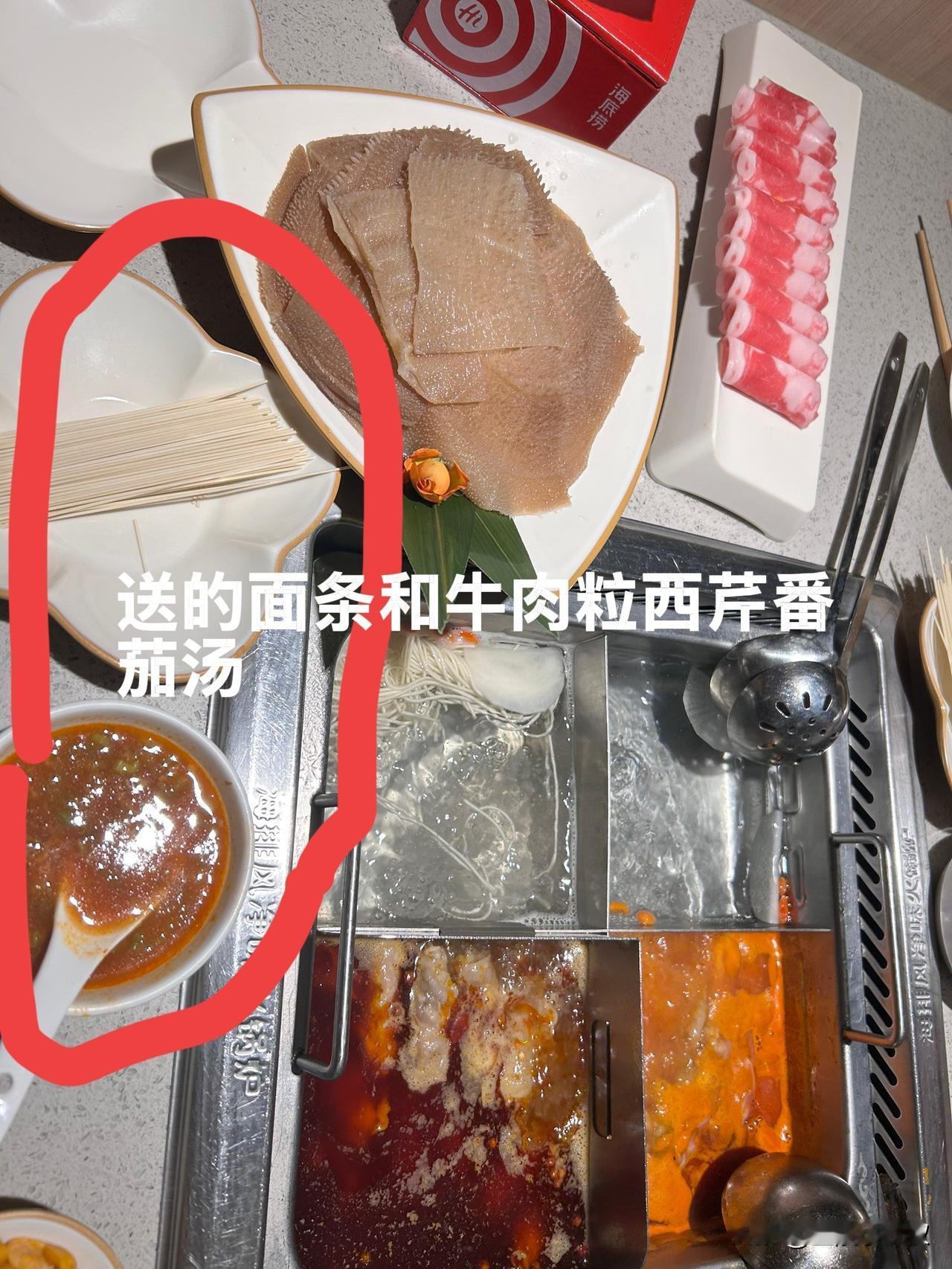 5赠送孩子吃的食物,昨天送来了薯条和番茄酱,这是我家俩孩子都喜欢的。由于不知近期增添加了这个项目,我家葛小帅特意点的肯德基外卖送到桌前。昨天当服务员听说孩子们不吃火锅时,特意问我们要面条吗?我们点头表示需要,很快一小把免费的挂面送来了,我们在清水锅里下好了面条,再配上牛肉粒西芹番茄汤,俩孩子就吃饱了。