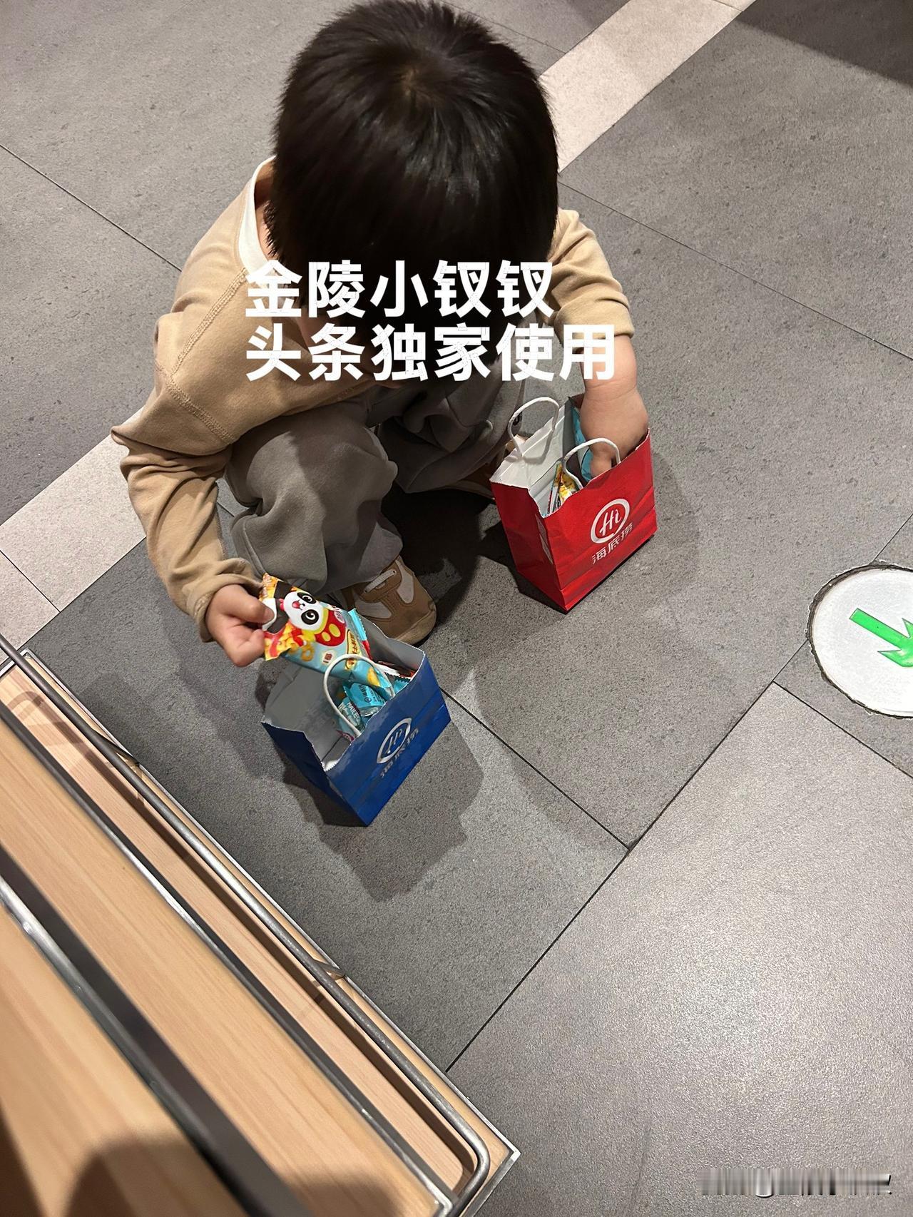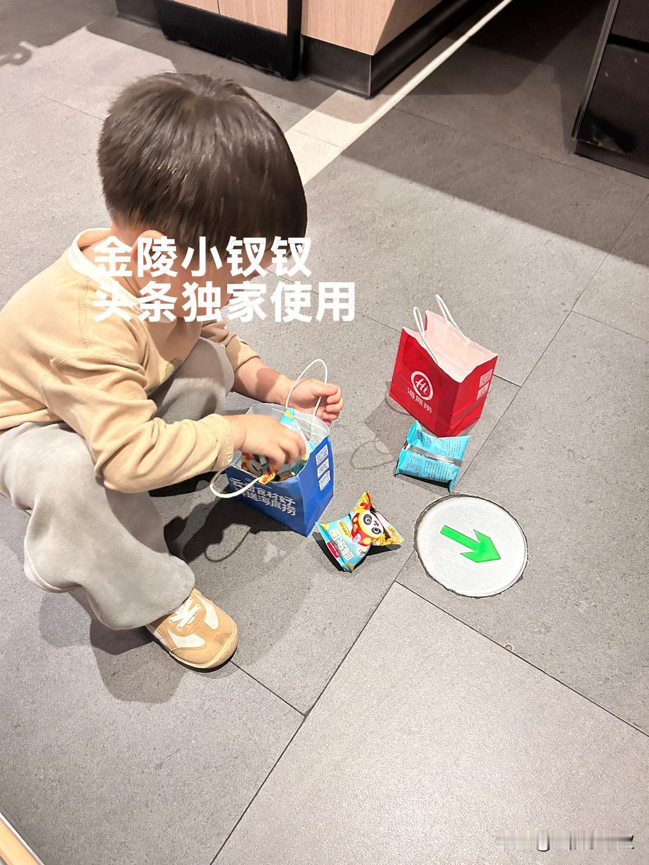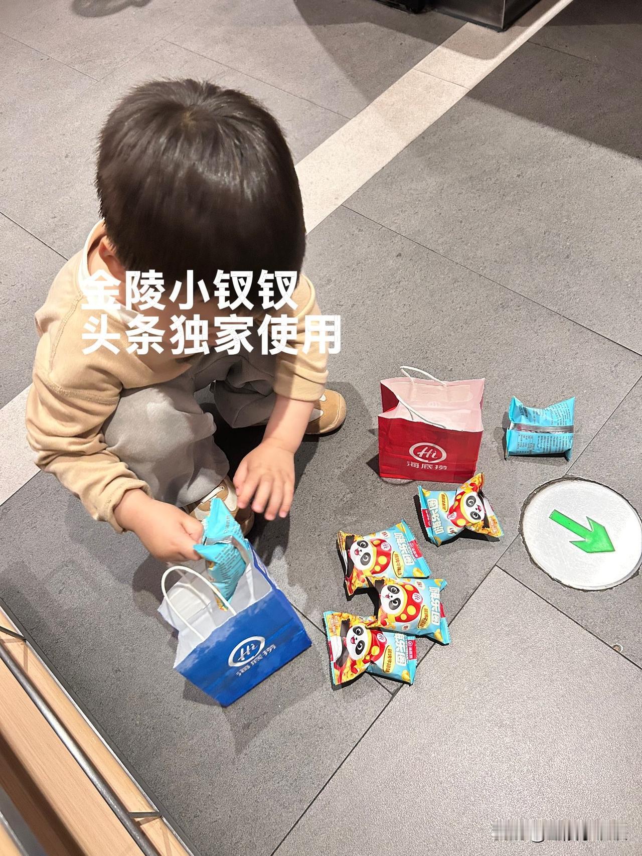 拿回袋子的同时,人家给了两袋小零食,这个时候宝儿去做手护理去了,小虎一看姐姐没在,马上把两袋小零食倒在了地上开始数,嘴里念叨着:都是一样的呀。我给葛小帅说:你儿又开始清点了,看他怎么分。小帅说:蓝色的是给男孩的,红色是女孩的。
