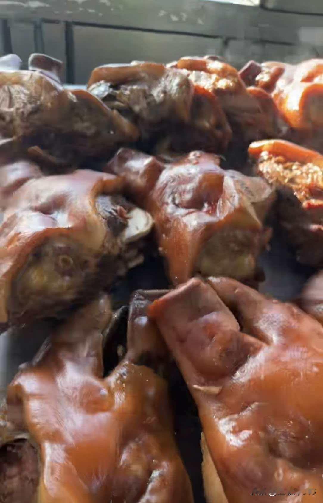 我去的这家超市卖现拆的猪头肉,据说早上三点就下锅卤了,熟食柜台前,买猪头肉的络绎不绝,拆完的猪头骨堆成了小山,这一天得卖个上千斤。