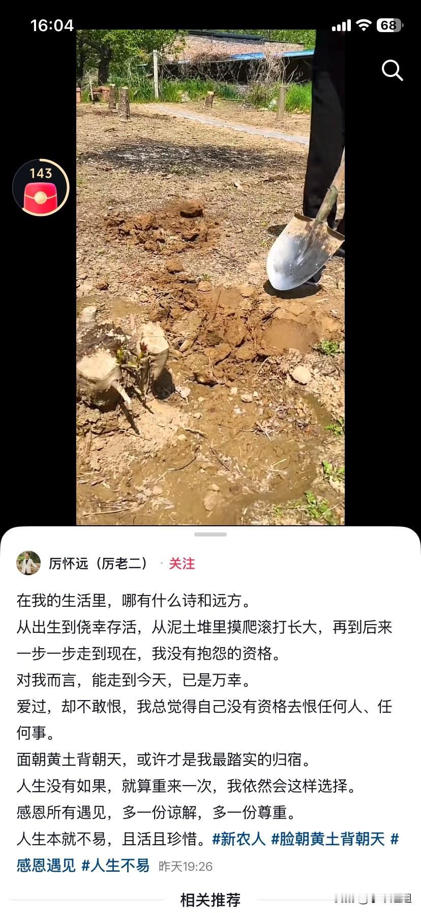 厉怀远现在踏实的在地里劳动,沉淀自己,也许每天用辛苦的劳动换来内心的安宁!