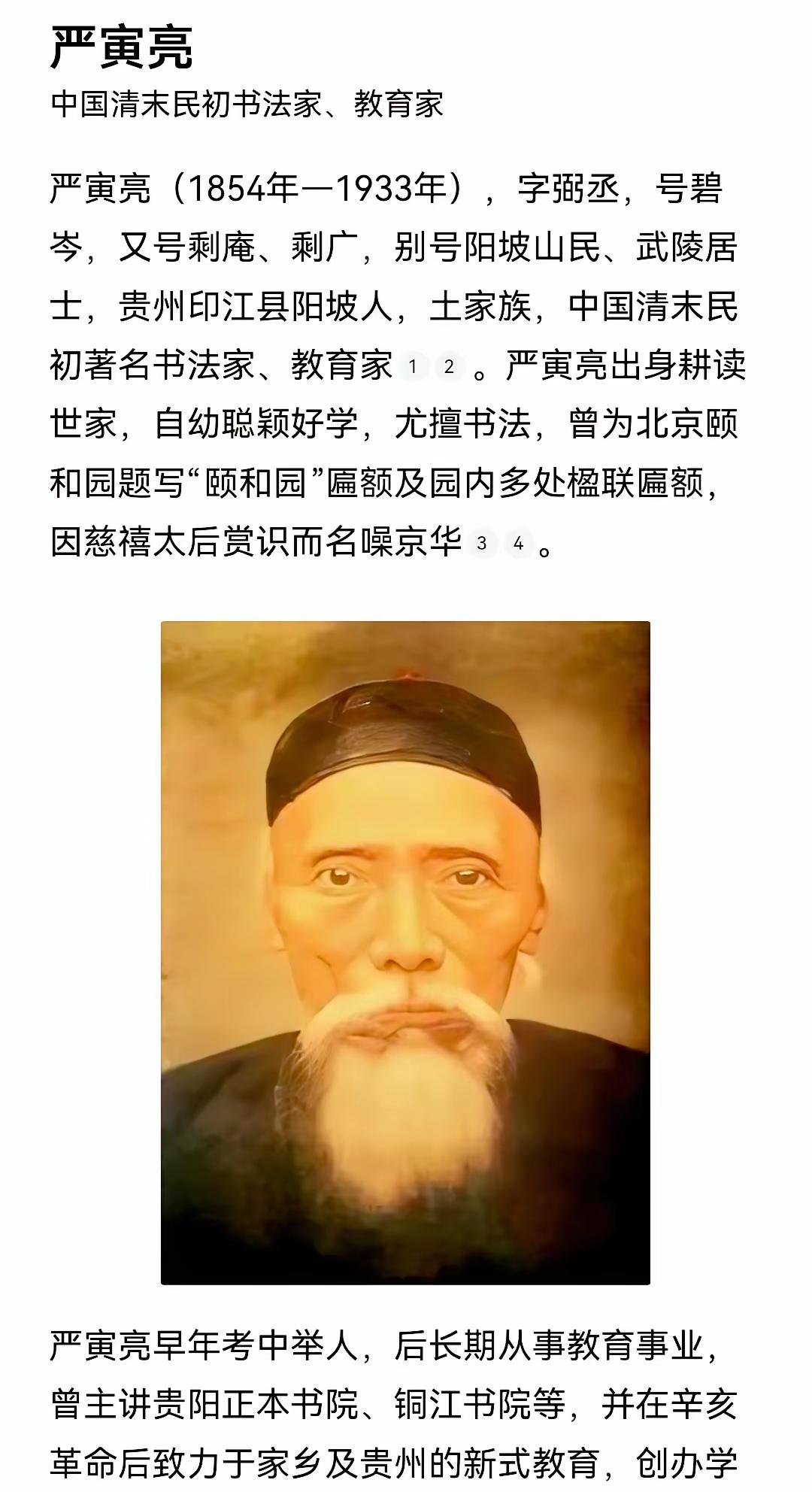 北京颐和园匾额原来是他题的。如果你到北京颐和园,如果你是一位书法爱好者,你肯定会注意“颐和园”三字匾额,古朴、圆融、丰腴、厚重,你定会问是谁写的,而且牌匾上盖有五方大印,这几方大印定然不简单,有一方大印是:慈禧皇太后御览之宝,还有一方印是:光绪御笔之宝,就是很多网友看到这方光绪印章认为这是光绪帝的墨宝,其实他是严寅亮的书法杰作。