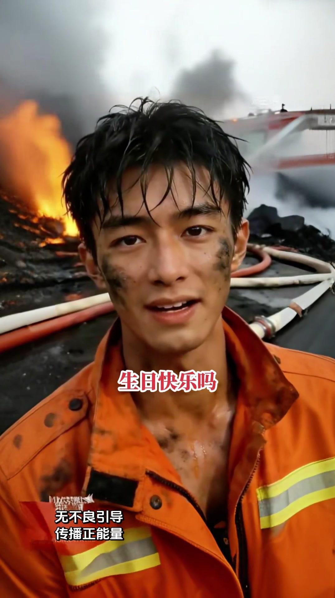 夜幕下,火光与警灯交织,一身消防战服,脸上是烟火留下的痕迹。今天是他的生日,简单的请求,藏着对平安的期盼。