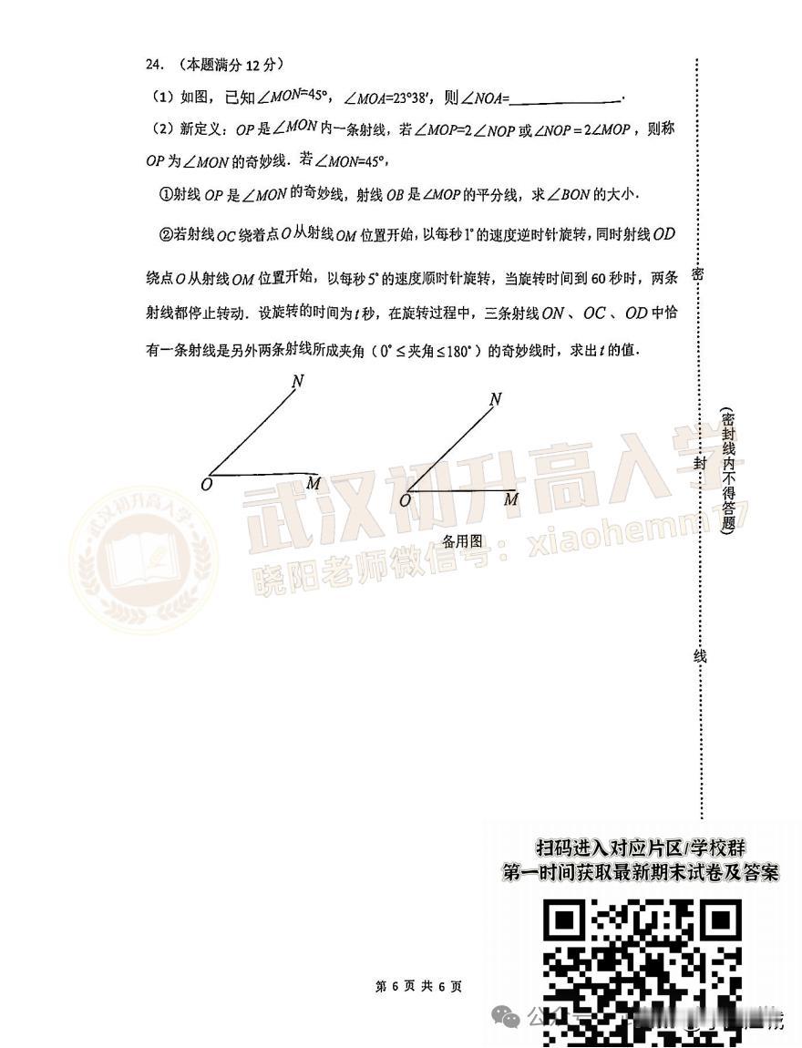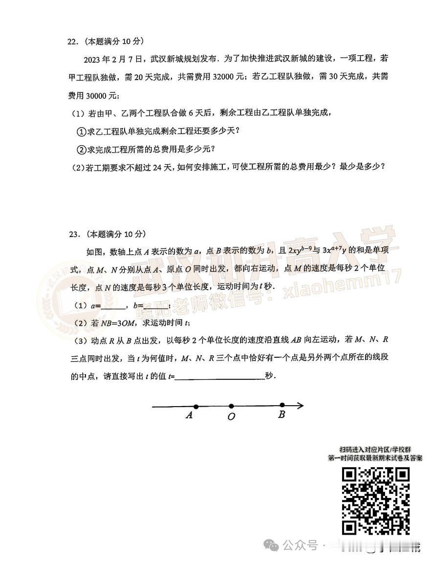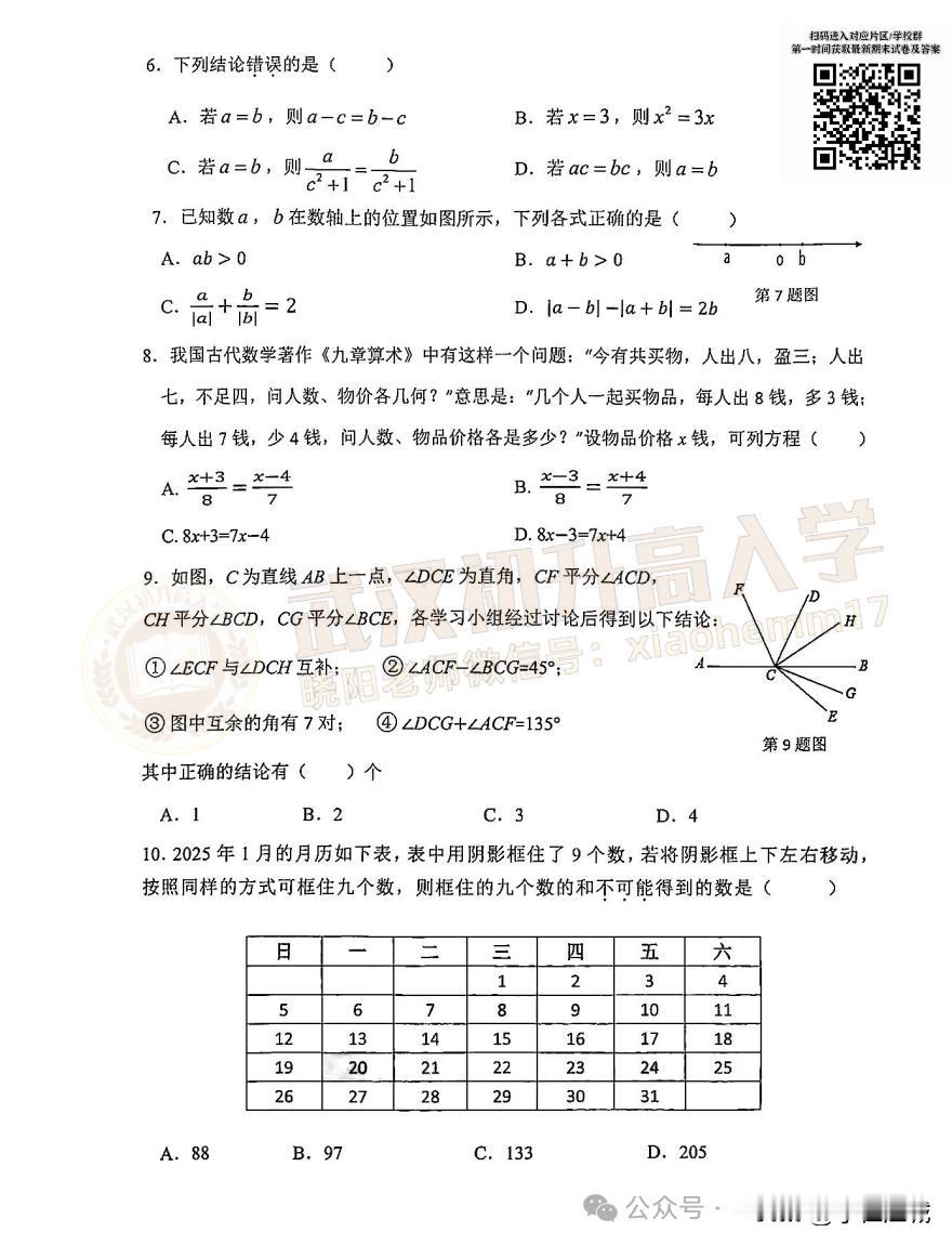 7年级洪山区数学期末试卷 · 2024-2025年上学期 私信回复“期末” 获取