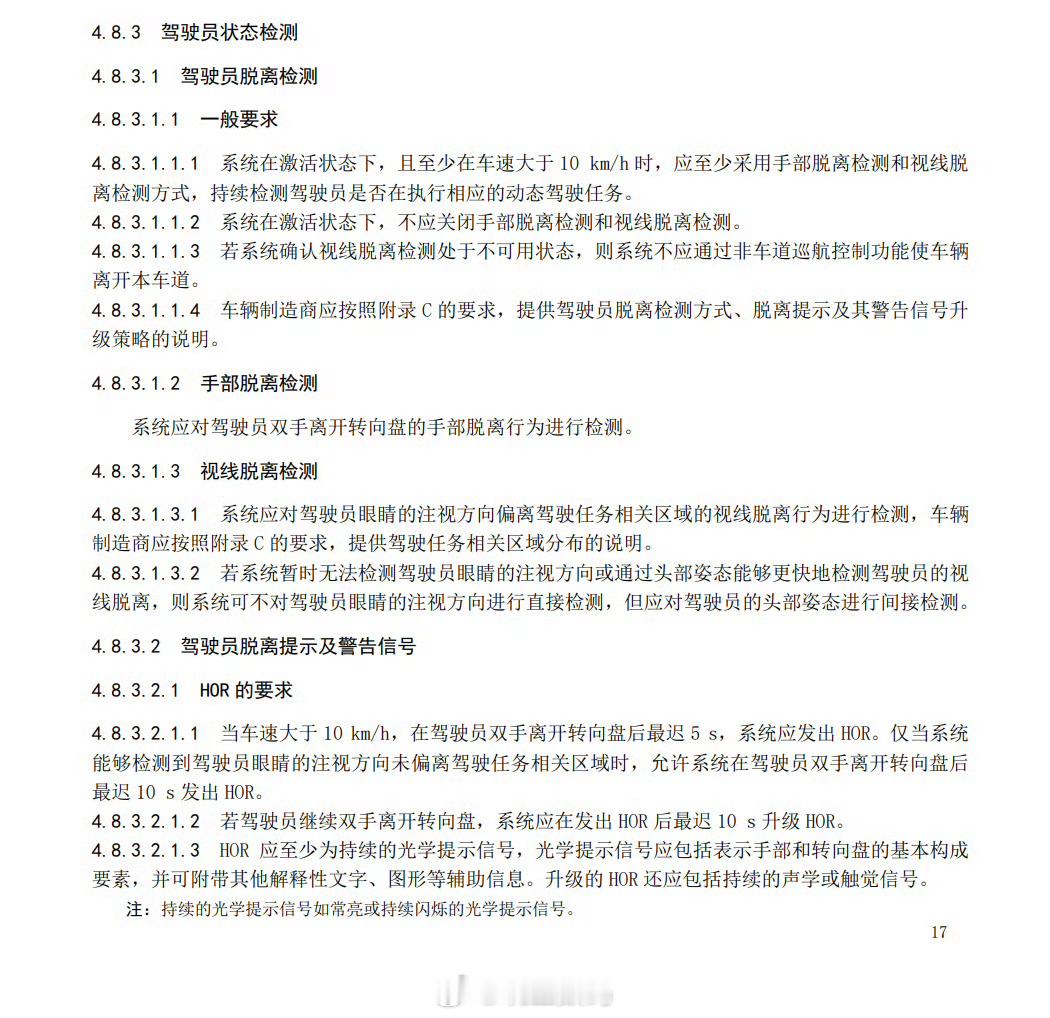 工信部关于驾驶辅助强制性国标来了,强制要求增加驾驶员行为监测,禁止脱手脱眼,手部脱离方向盘不得超过10s,眼部脱离不得超过5s,多次违反监测,禁用辅助驾驶系统。看以后谁还敢开智驾玩手机,开智驾睡觉,通通给禁用就行了