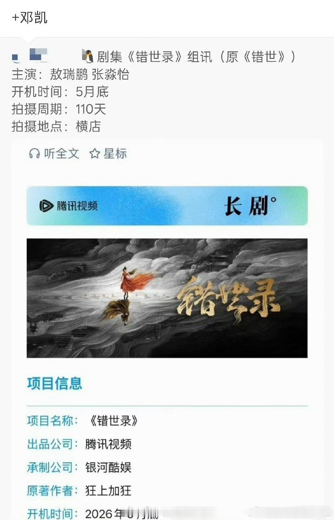 🍉《错世录》敖瑞鹏,张淼怡,邓凯粉丝不太满意邓凯《逐玉》热度后又接了个男二,还