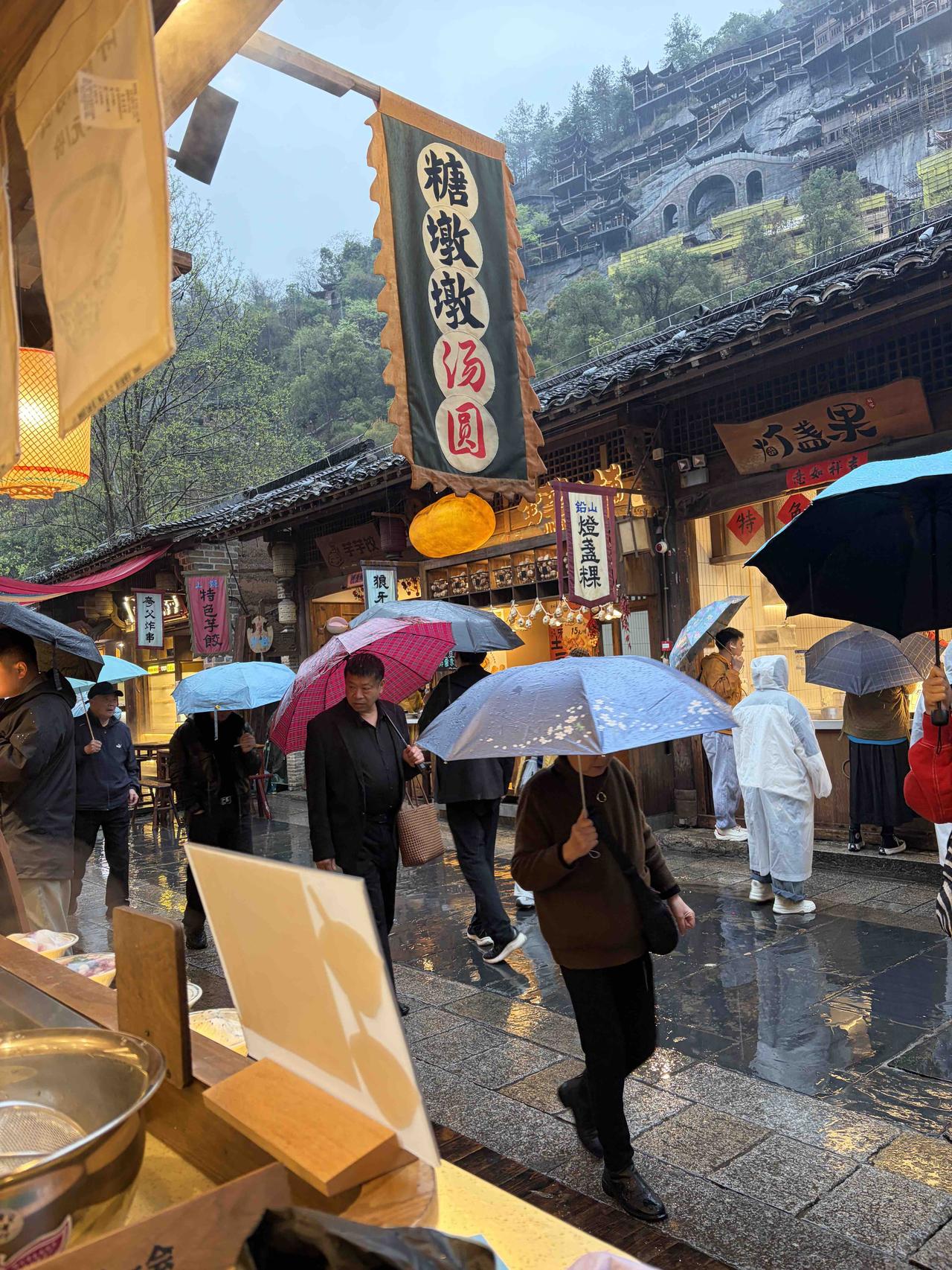 不得不说,我第一次见景区摊贩,不是一锤子买卖的作风。雨天潮湿,想喝一碗酸甜可口 热乎乎的汤驱寒,于是走进一家汤圆店,点了一份醪糟小汤圆,味道却不是我想要的。景区的食物嘛,好吃是惊喜,难吃才是常态。