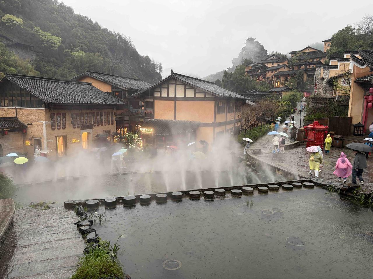 旅游是个体力活,我脚底磨出了几个泡。天空不时飘着细雨,穿着雨衣、打着伞,买了两副鞋套,可鞋袜还是湿了。