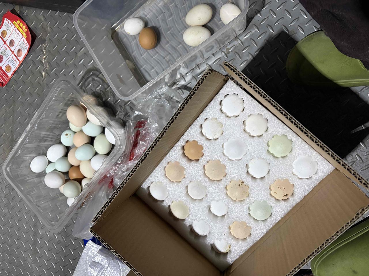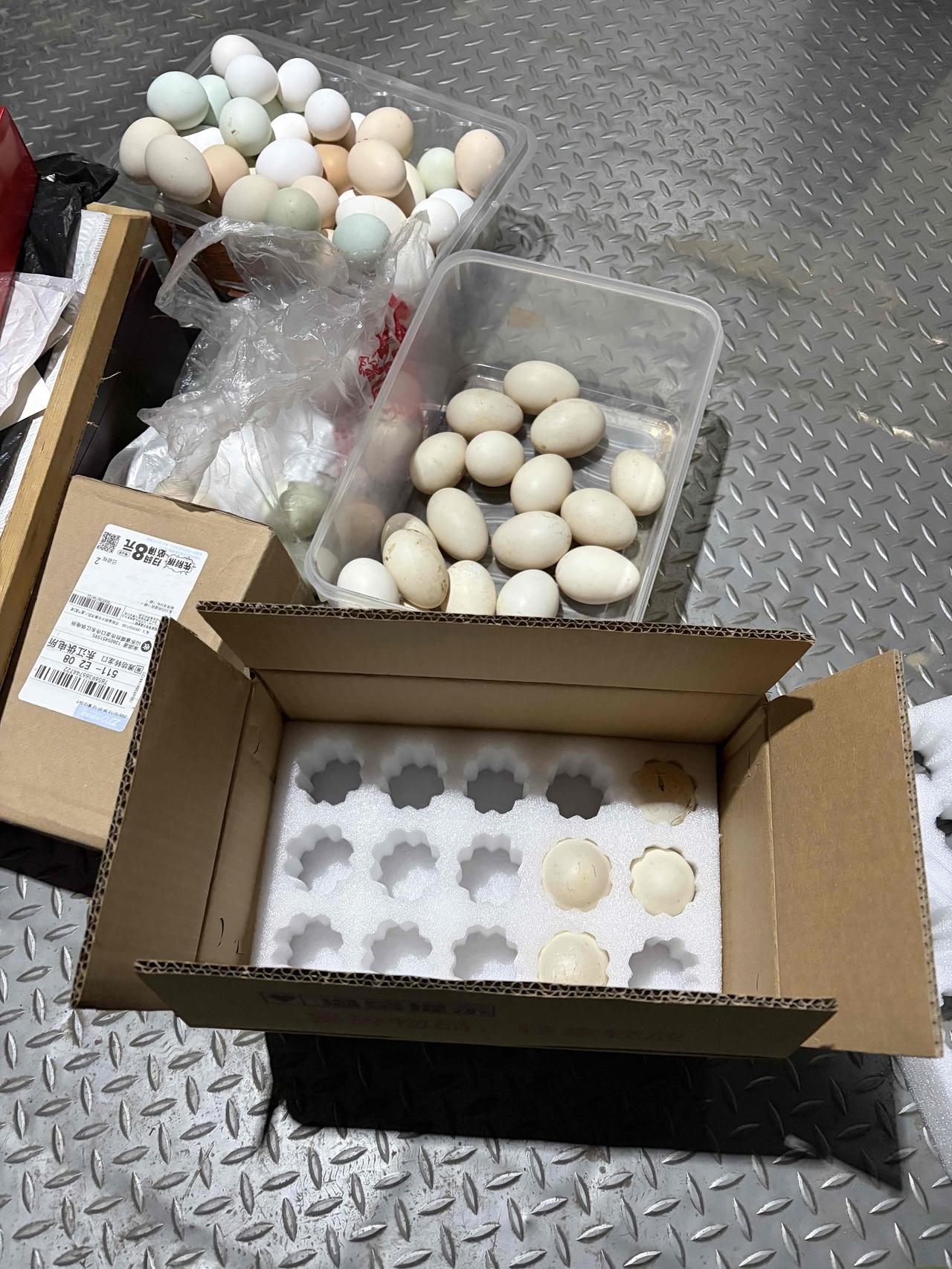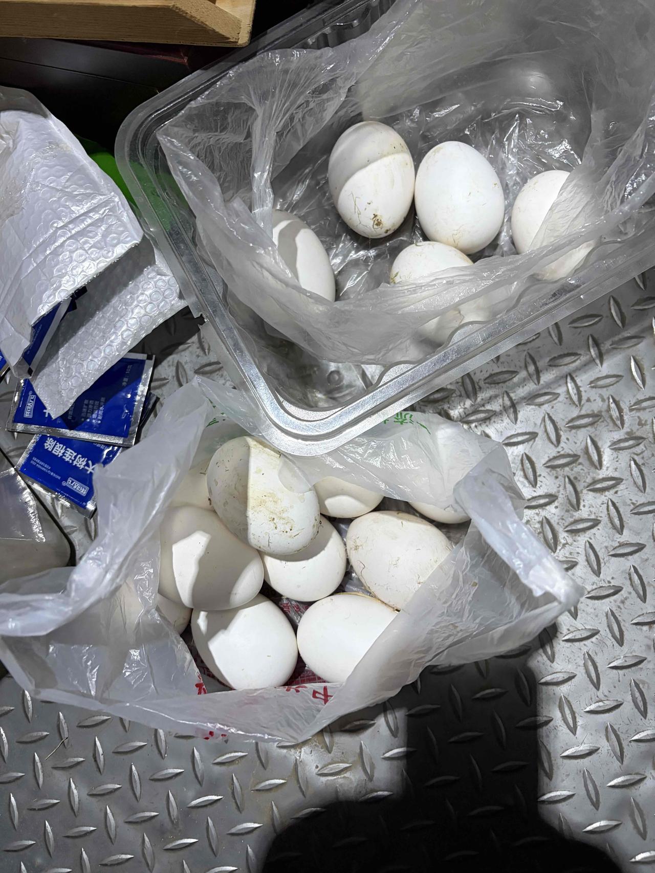 攒了几天的鸡鸭鹅蛋,装箱装袋往外送。