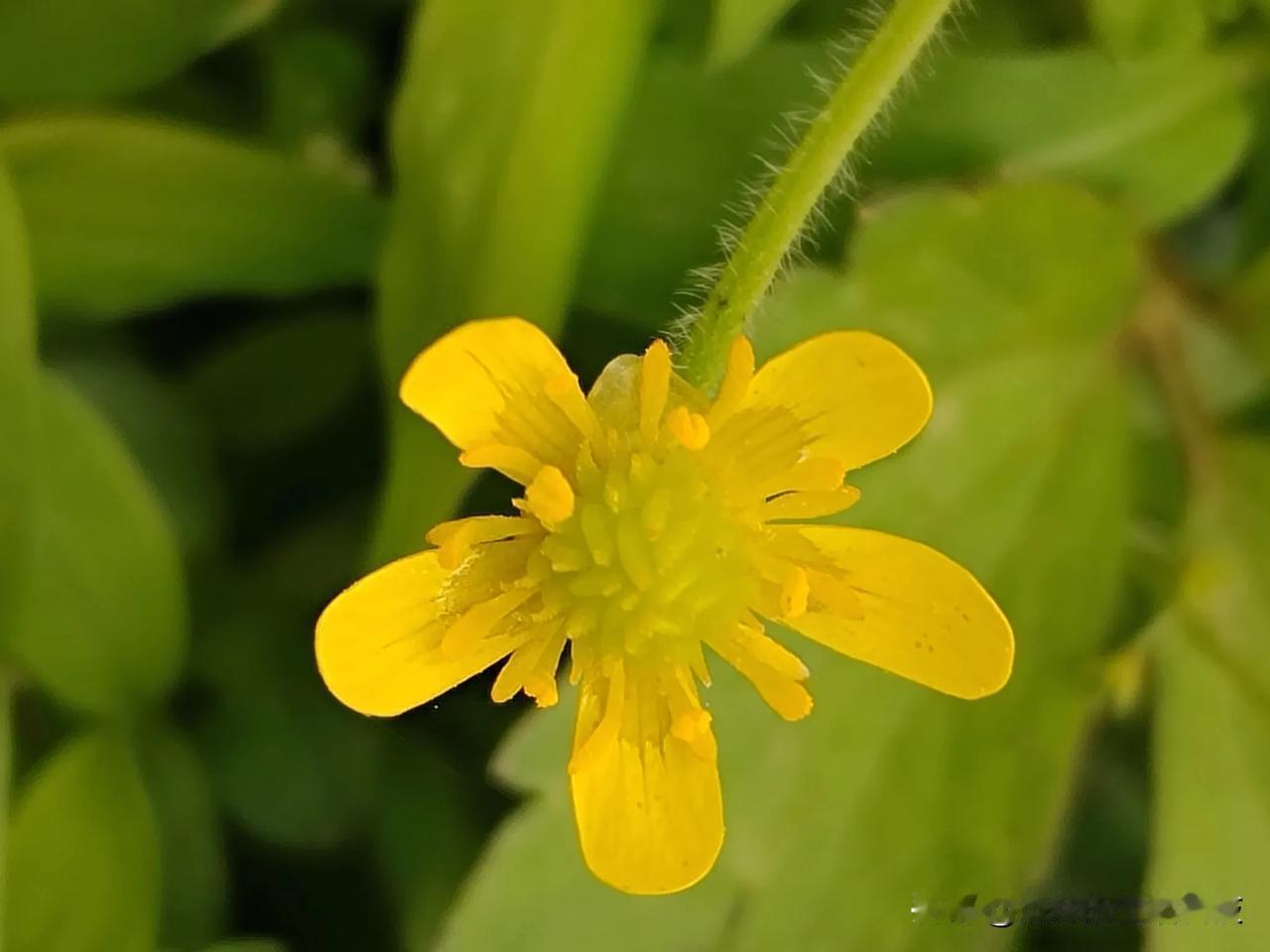 毛茛须根多数簇生。茎直立,高30~70厘米,中空,有槽,具分枝,生开展或贴伏的柔毛。基生叶多数;叶片圆心形或五角形,边缘有粗齿或缺刻,侧裂片不等地2裂,两面贴生柔毛,下面或幼时的毛较密;叶柄长达15厘米,生开展柔毛。下部叶与基生叶相似,渐向上叶柄变短,叶片较小,3深裂,裂片披针形,有尖齿牙或再分裂;最上部叶线形,全缘,无柄。聚伞花序有多数花,疏散;花梗长达8厘米,贴生柔毛;萼片椭圆形,长4~6毫米,生白柔毛;花瓣5,倒卵状圆形,花药长约1.5毫米,雄蕊多于10,心皮离生;花托短小,无毛。聚合果近球形,瘦果扁平。