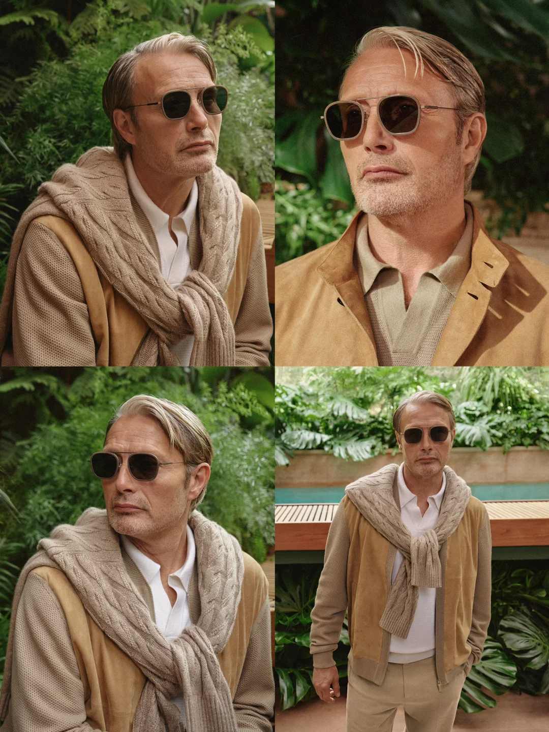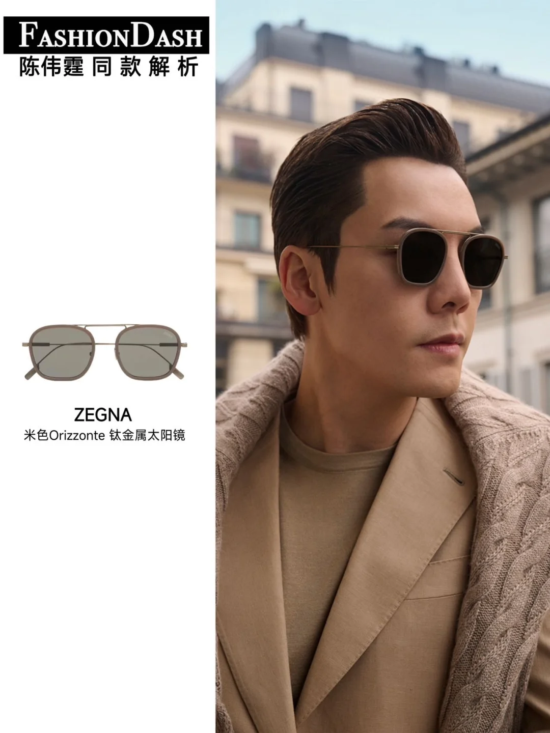 而这两套造型的灵魂点睛之笔,必须是ZEGNA Orizzonte I 太阳镜!它既是杰尼亚的标志性款式,也是品牌眼镜品类中的代表,更是和Triple Stitch鞋履齐名经典之作,直接给整套穿搭注入了高级感!利落的几何线条配上标志性金属镜梁,简约又有记忆点,上脸轻便无负担,不管是陈伟霆还是麦叔,都戴出了低调精致的老钱气质,材质舒服耐用、版型对脸型很友好,镜身藏着小巧的品牌细节,质感直接拉满,设计灵感还自带户外美学,把精致与松弛感拿捏得刚刚好。
