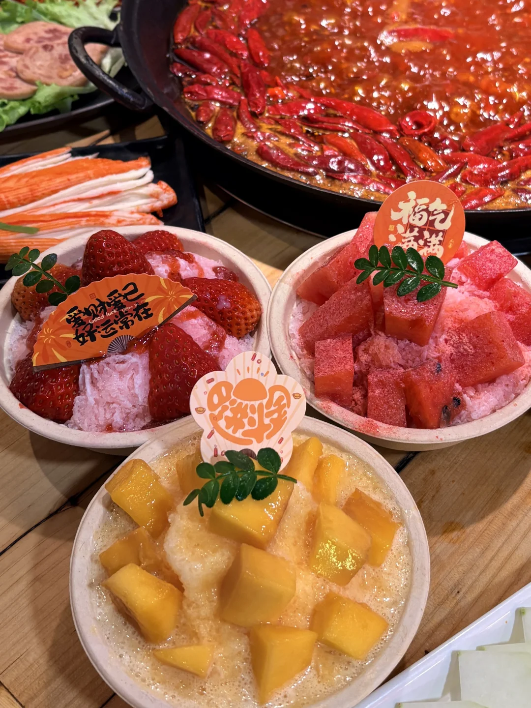 ✅芒果绵绵冰铺满新鲜芒果肉,金黄冰山配红油火锅,视觉味觉双暴击
