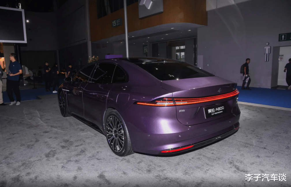 侧身设计上,昊铂A800造型较为低趴,而且腰线也是简洁的设计风格,同时车顶的线条也是溜背式的设计语言,加上多辐式的轮毂,让车辆整体的运动质感更加的出众,并且在门把手方面,昊铂A800同样采用了隐藏式的门把手设计,在侧一般方面,同样有小蓝灯的存在,再加上侧裙方面黑色的装饰板,就整体的辨识度上,也是不差的。