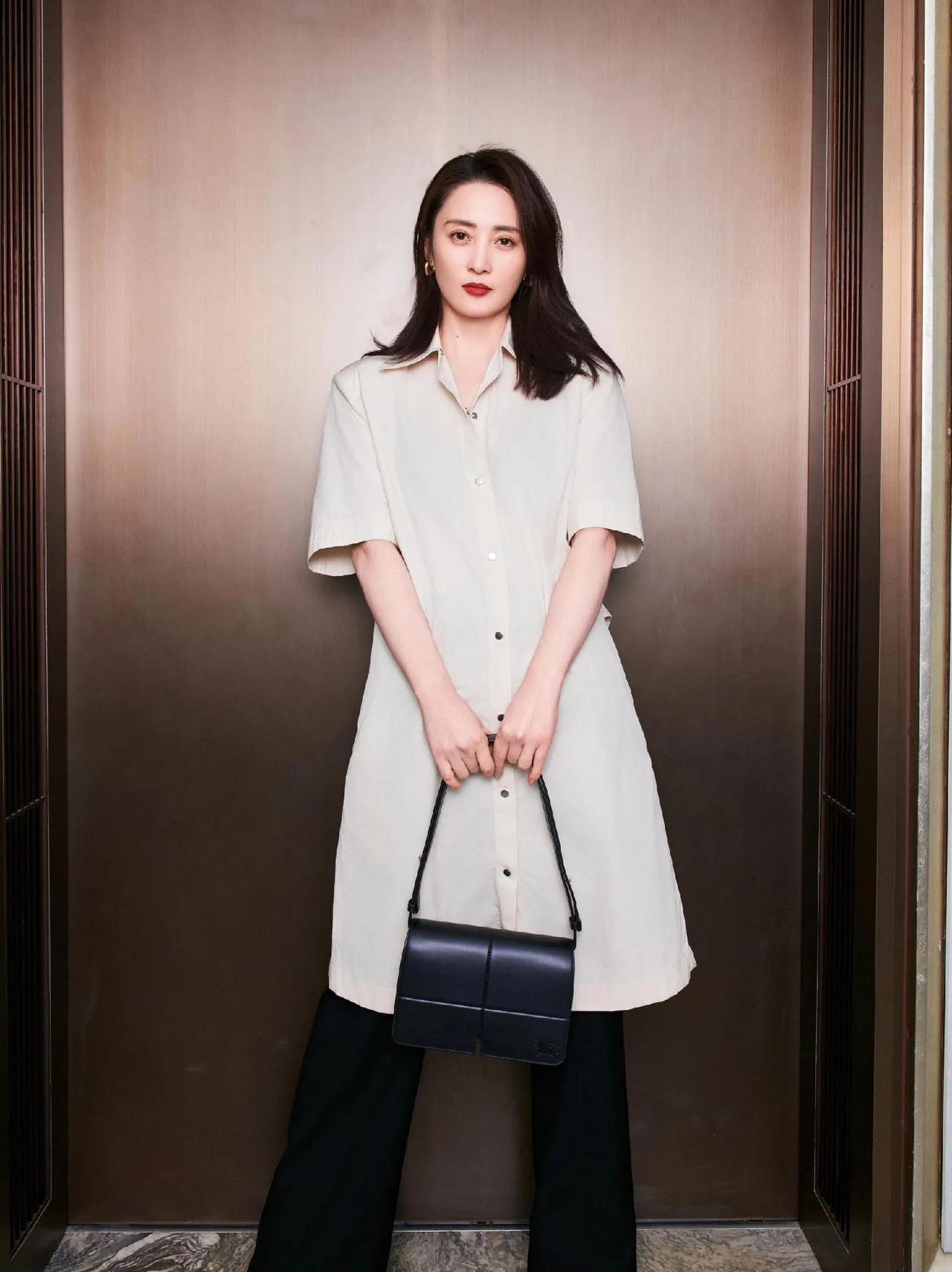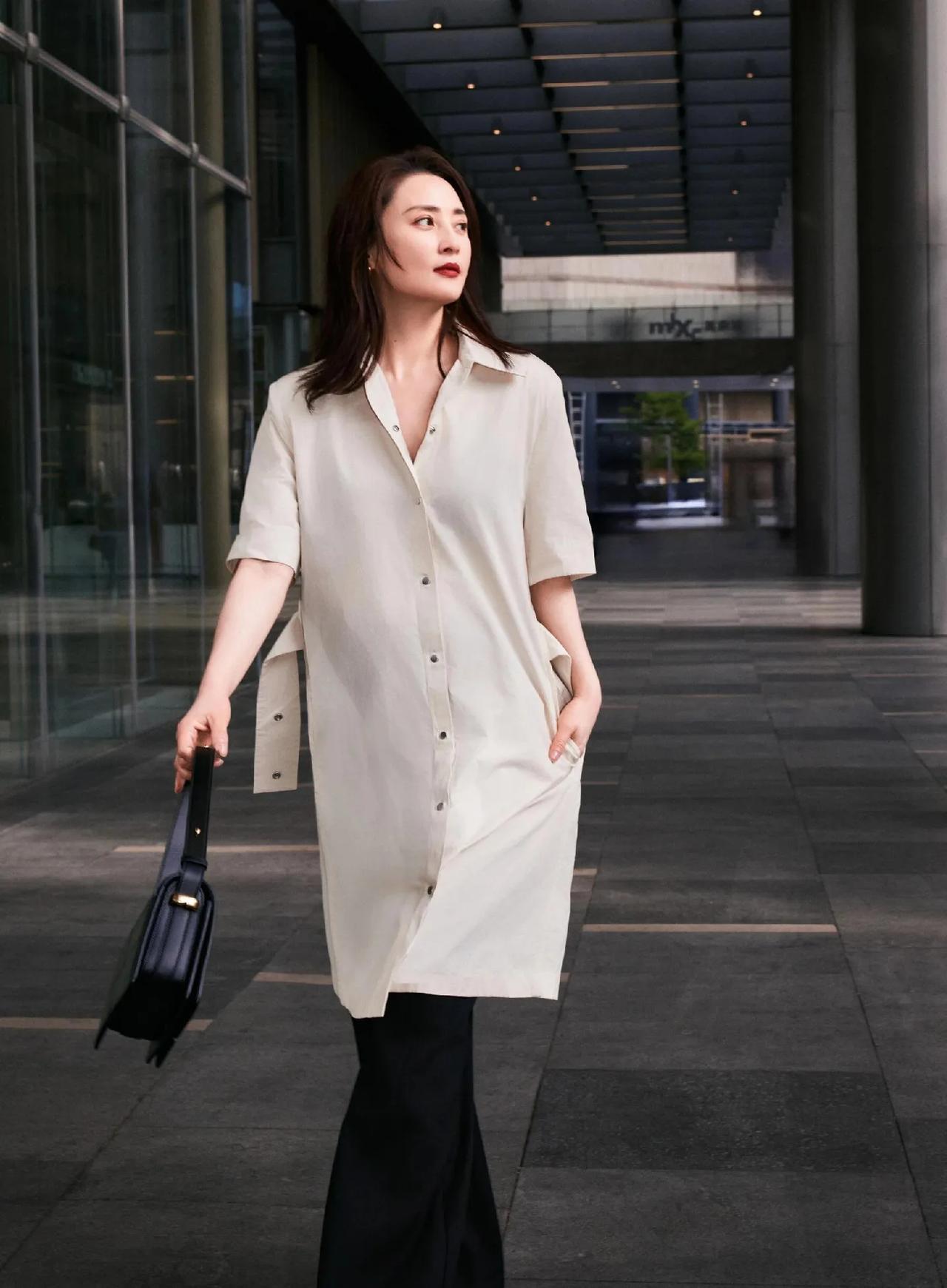 被蒋勤勤这组造型惊艳到了!衬衫连衣裙+黑色直筒裤,简约却透着满满的高级感,把成熟