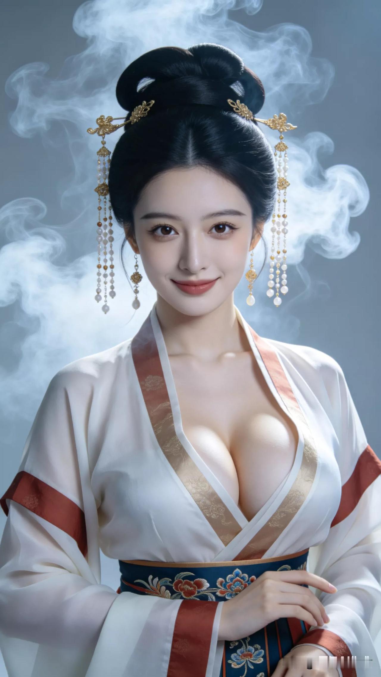 汉服纱衣古仕女张立启原创书画AI作品古仕女发髻服饰集锦首发第700期古风仙女大片 张立启原创书画AI作品首发