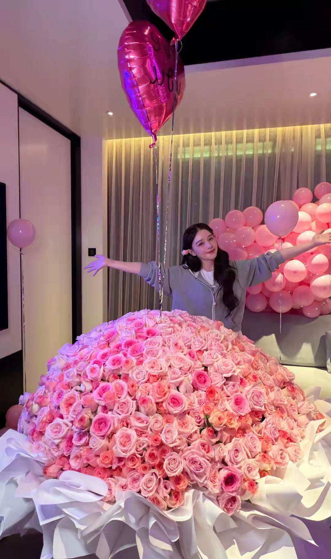 李小冉唐艺昕为阚清子庆38岁生日,玫瑰花大到房间都放不下 好幸福啊,阚清子穿校服