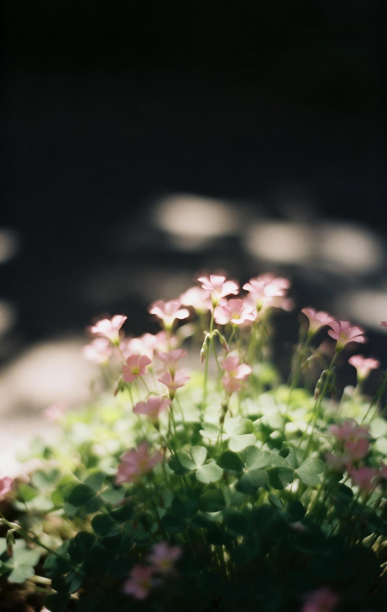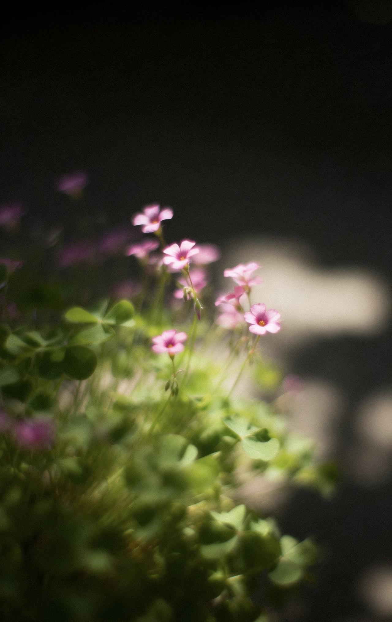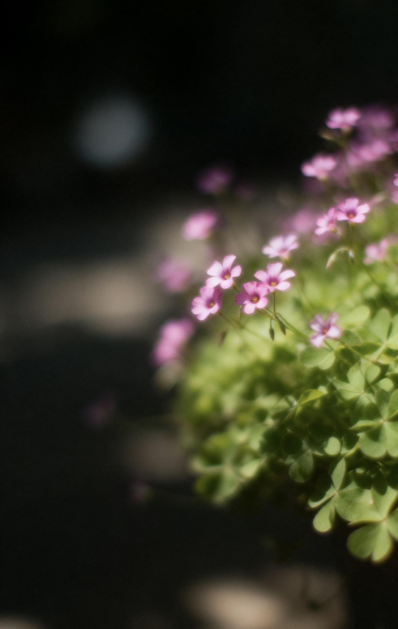 📝画面以大留白极简构图,中远景里一蓬酢浆草舒展飘逸,细小花朵清新温柔,叶片自然灵动。采用伦勃朗光搭配暗色朦光,高反差强暖光交织出斑驳弥散的迷离光影,氛围感朦胧诗意。