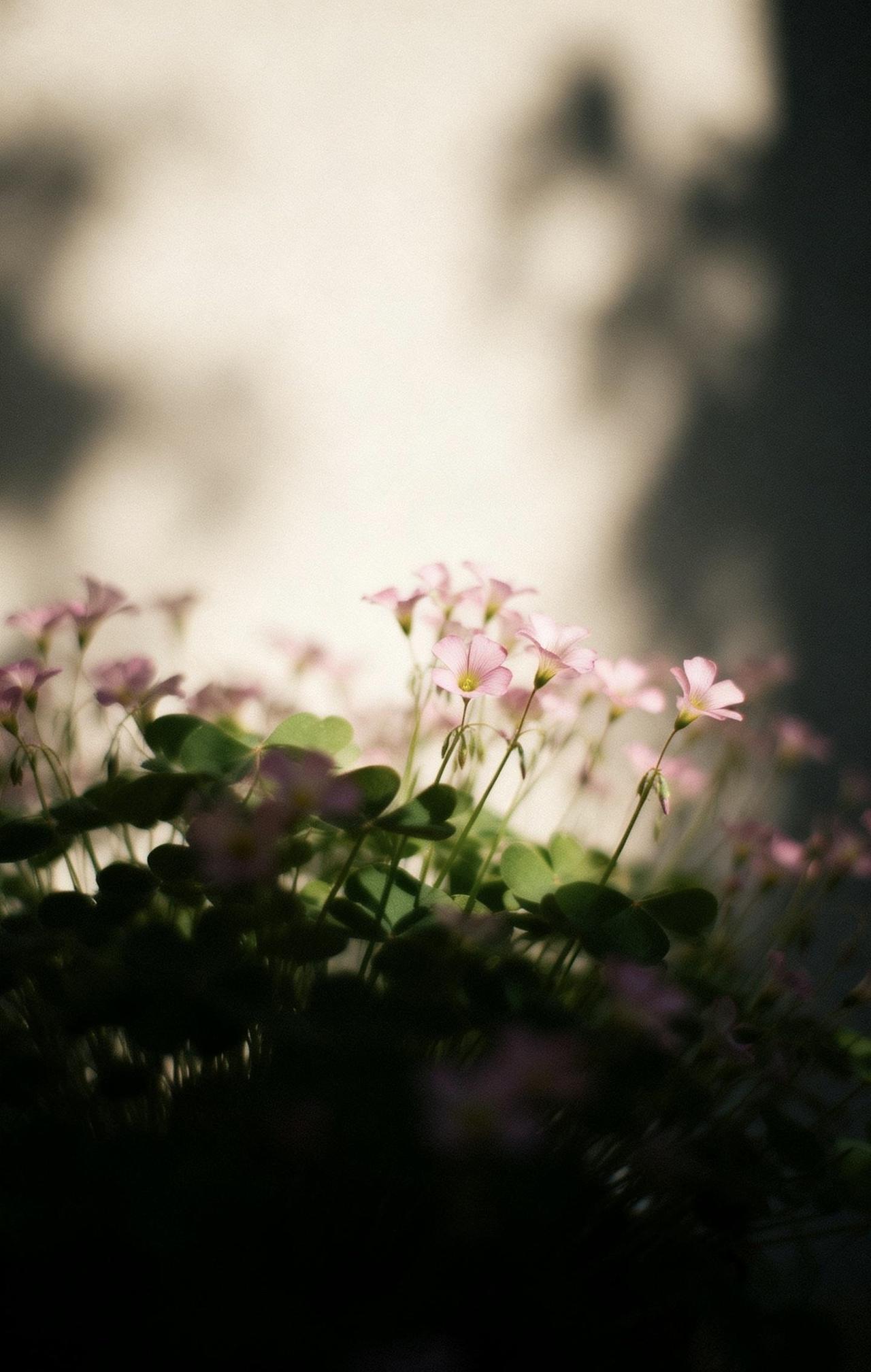 精美壁纸(697)🌈 📝画面以大留白极简构图,中远景里一蓬酢浆草舒展飘逸,细