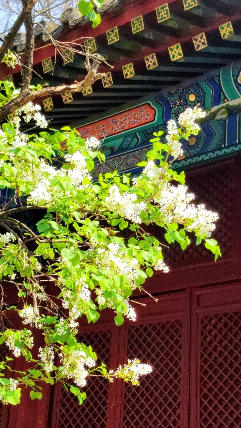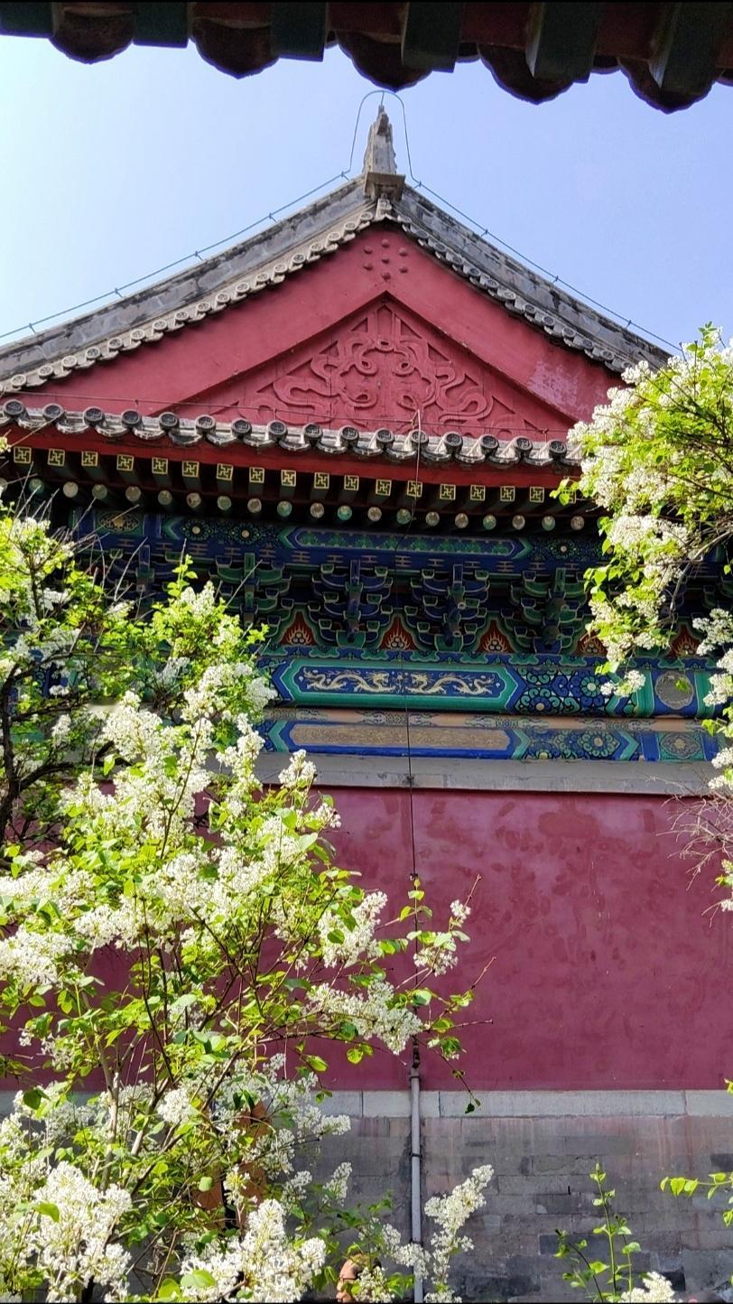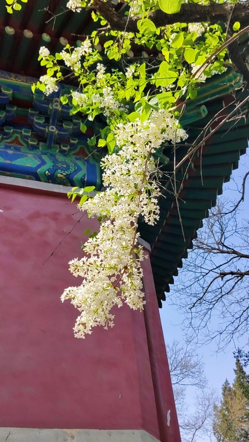 走进法源寺,没想到来今天拍丁香赏丁香的游人这么多,正逢中午,很多年轻人利用午休也来拍照。丁香清新的幽香扑面而来,法源寺里的丁香多是百年古木,树干苍劲却依旧繁花满枝,红墙灰瓦间,白的似雪,紫的如霞,将古寺的春色装点的格外雅致。