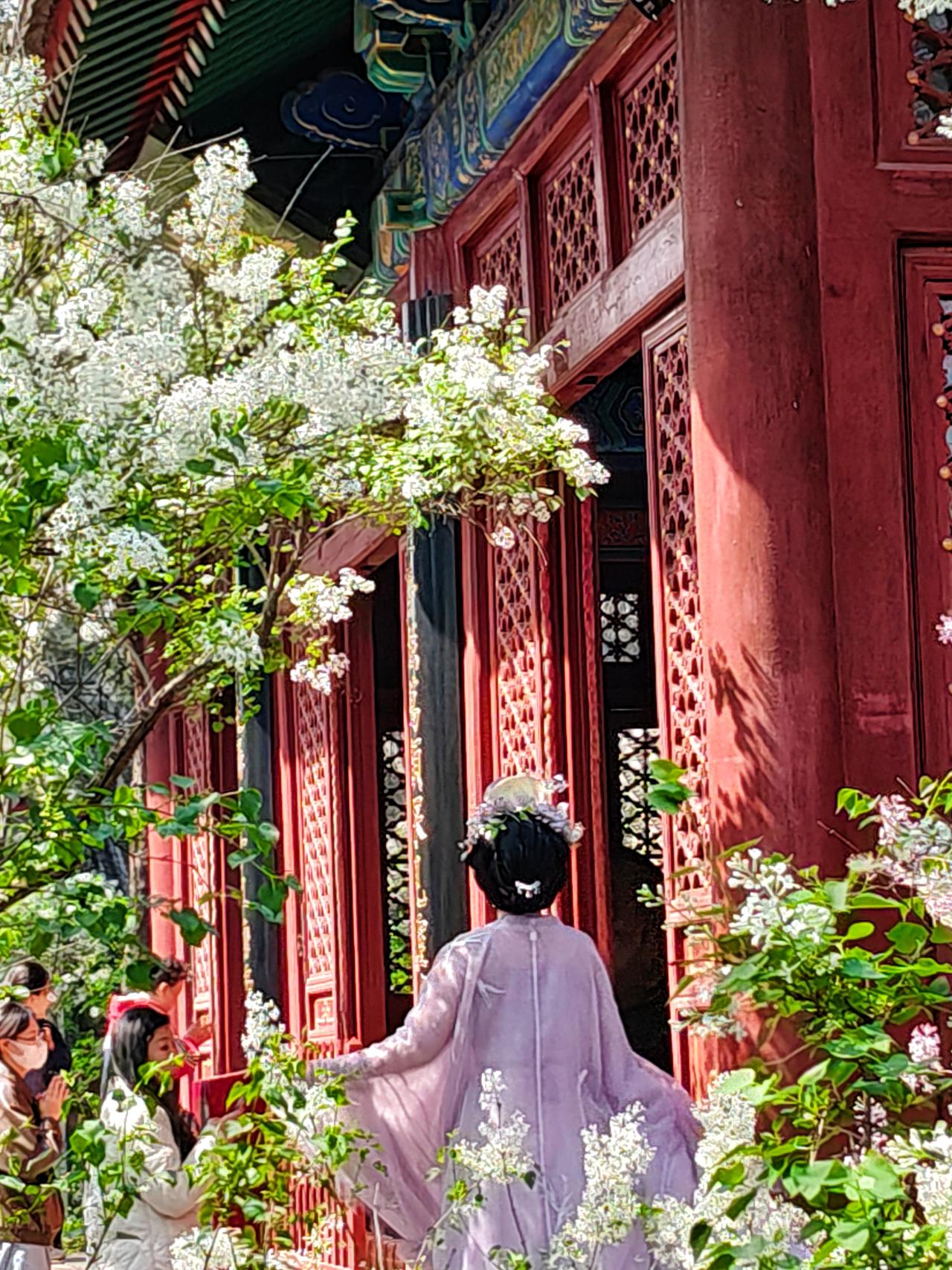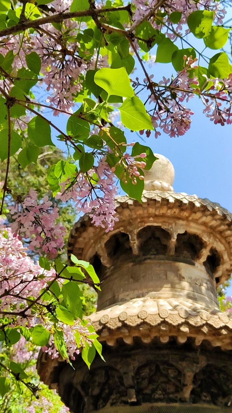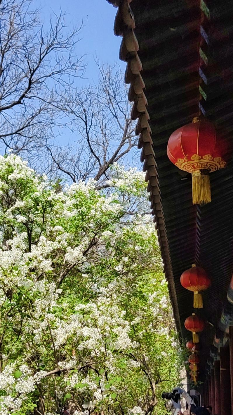 走进法源寺,没想到来今天拍丁香赏丁香的游人这么多,正逢中午,很多年轻人利用午休也来拍照。丁香清新的幽香扑面而来,法源寺里的丁香多是百年古木,树干苍劲却依旧繁花满枝,红墙灰瓦间,白的似雪,紫的如霞,将古寺的春色装点的格外雅致。