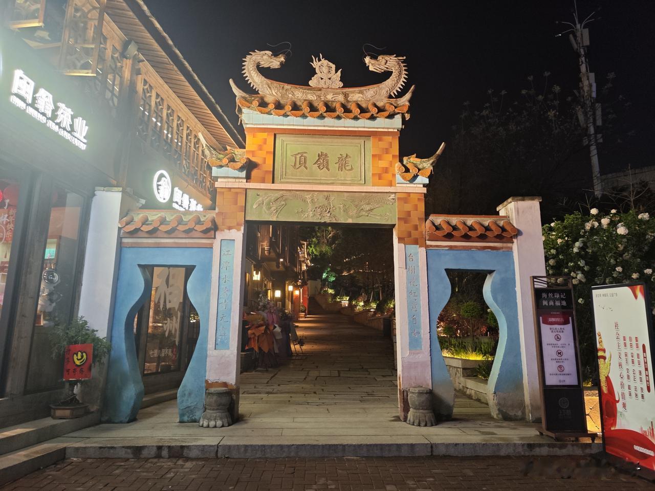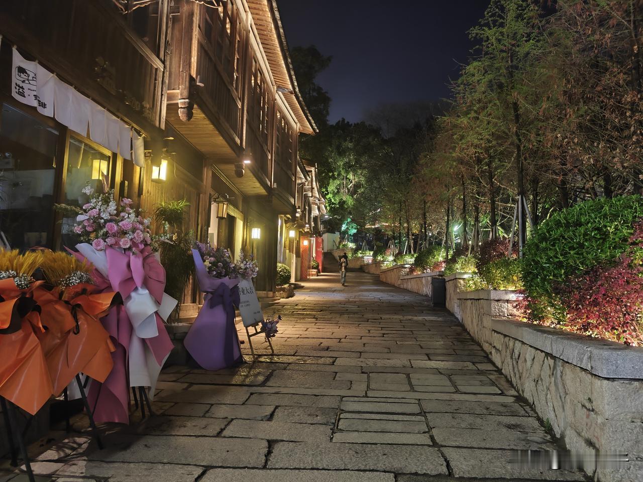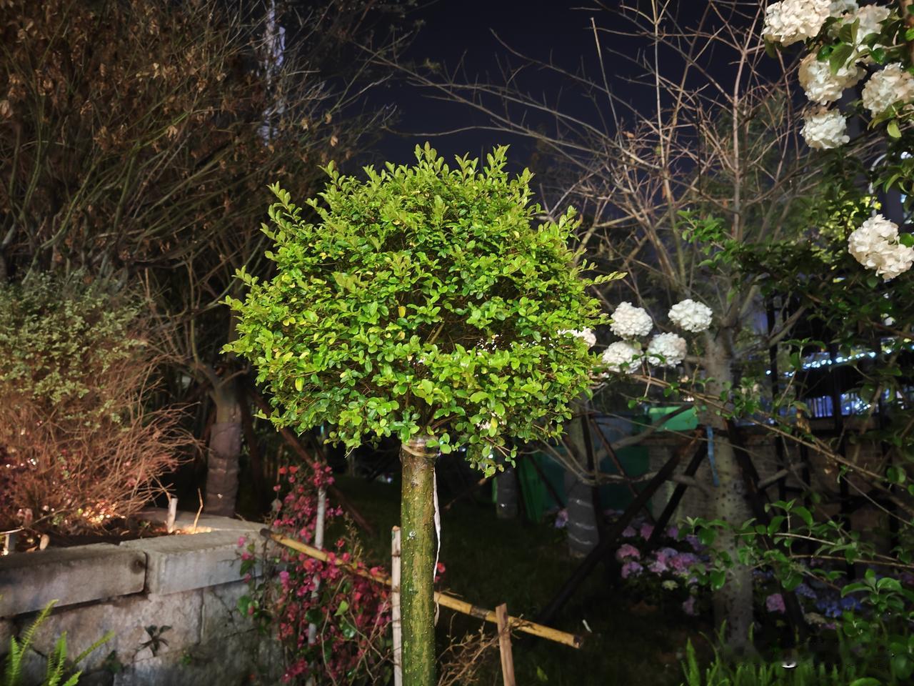 粉、蓝、紫渐变花团层层叠叠,哪怕是夜晚也能看出它的艳丽,雪白的木绣球在牌坊旁边,中式浪漫十足,花期正盛,别错过这份春日美好。