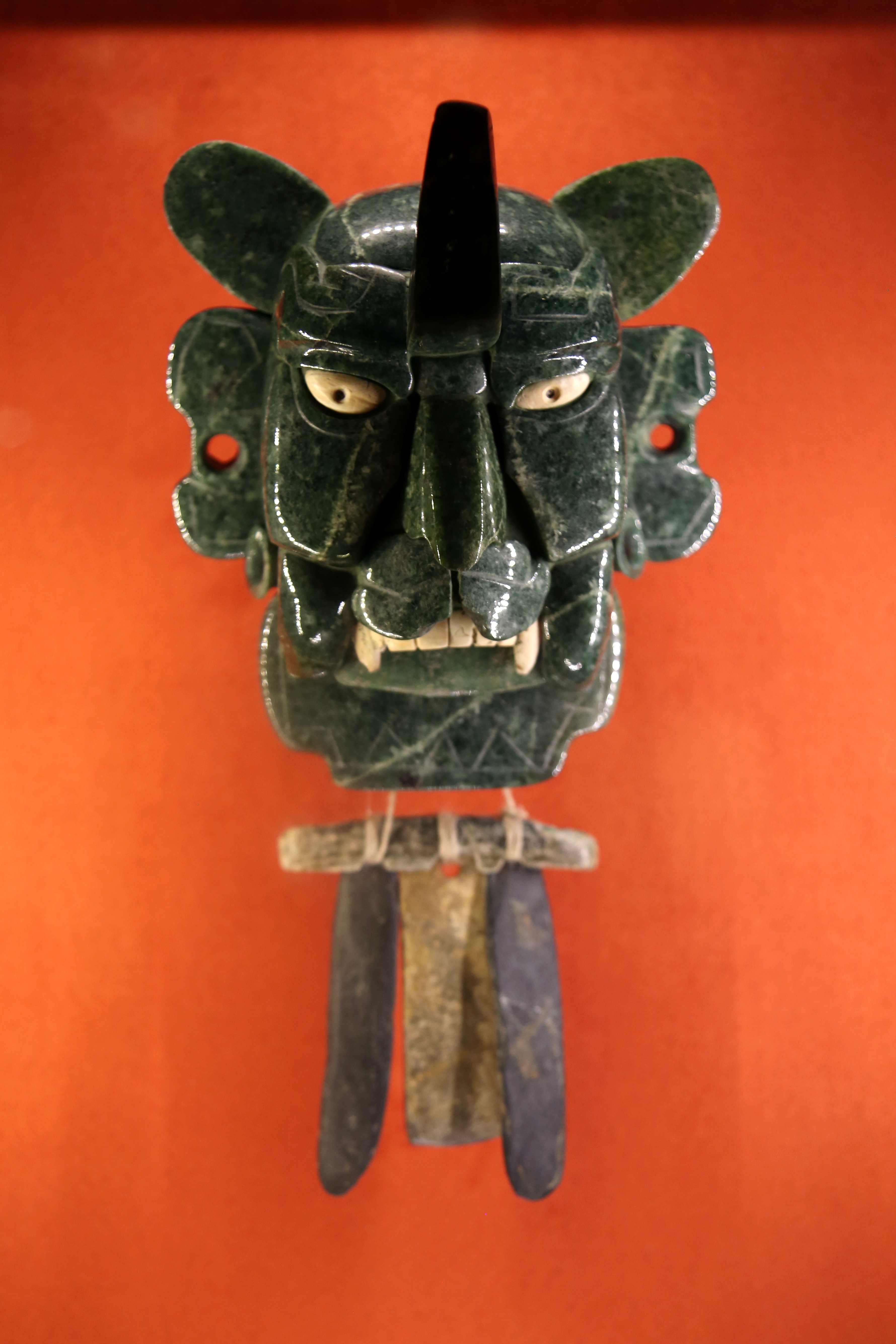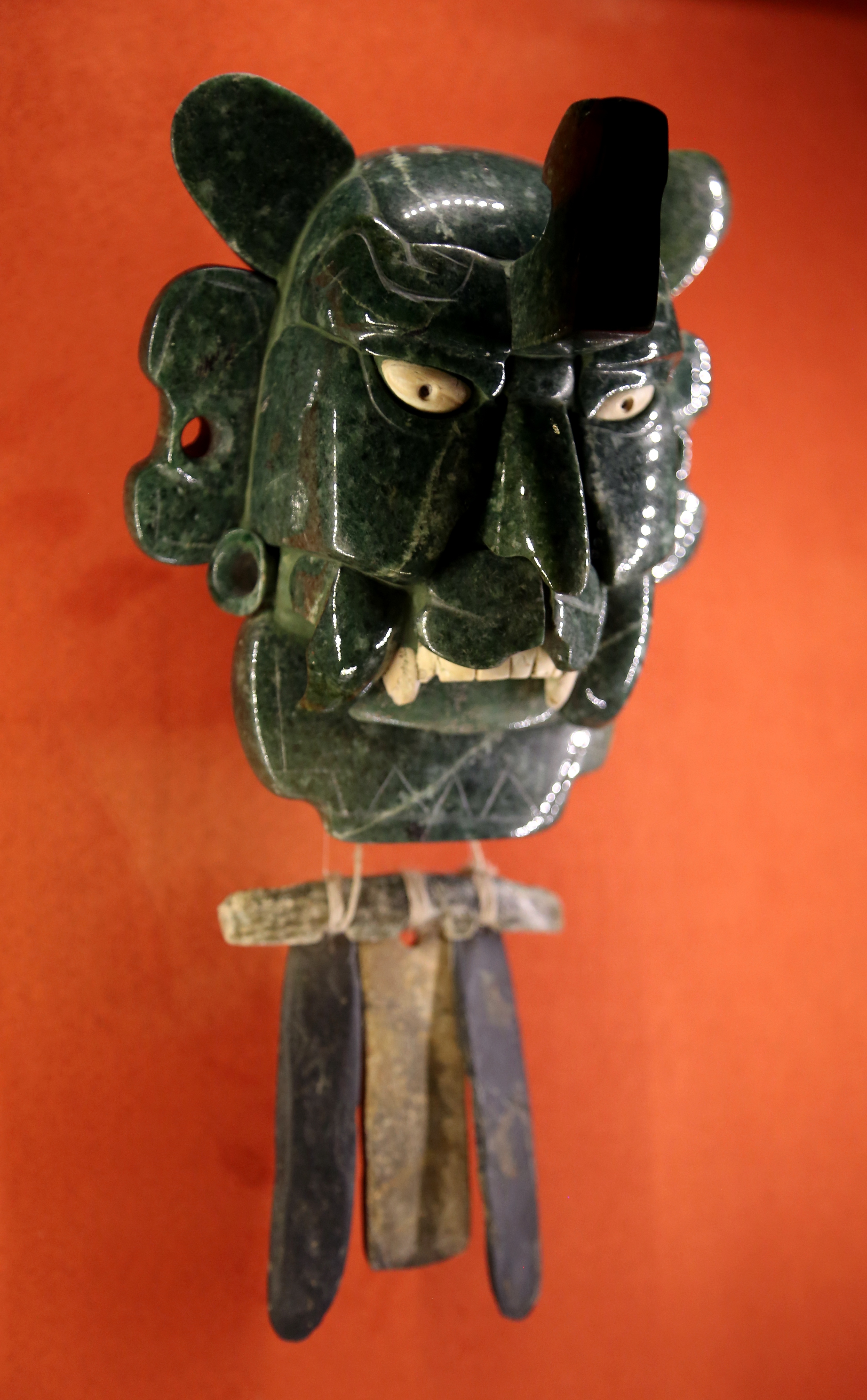 墨西哥国家考古和人类学博物馆藏 萨波特克文化 蒙特阿尔万(Monte Albán)二期,公元前 100 年 至公元 100 年 的玉面具。结合了人与美洲豹形象