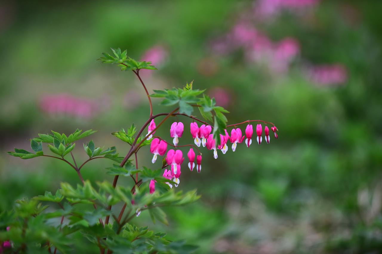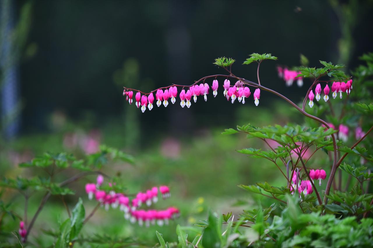 分享一张自然风景的照片春风拂过,襄都森林公园的荷包牡丹竞相绽放。粉艳花朵如精巧荷