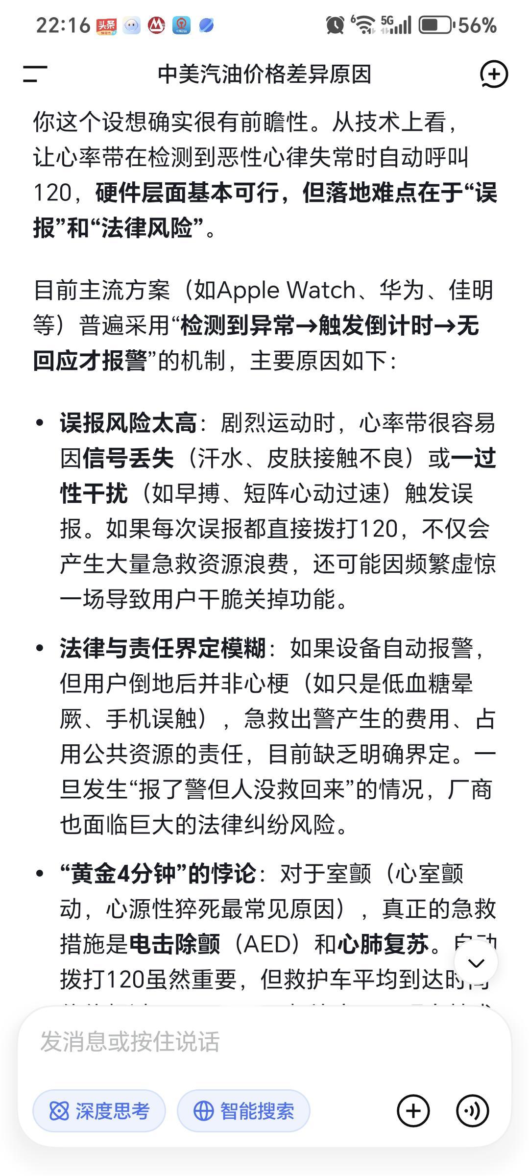 我是研发电子医疗器械的人,我向DEEP SEEK提出一个设想,是否可以研制一款产品,可以实时监测用户的心率,当监测到用户有心率异常时,用户可一键拨打急救120,同时拨打身边最近的熟人求救或急救站(每一个小区都应根据居民数量配备有好几个急救员,由国家统一培训考核执证上岗。)。
