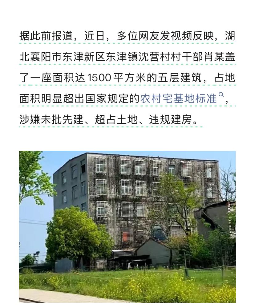 湖北襄阳沈营村村干部肖某,直接在村里盖起1500平五层“超级豪宅”,把农村宅基地标准踩在脚下,未批先建、超占土地,把公权力当成自家建房工具,把村民利益抛在脑后。典型的“小蚁巨贪”!