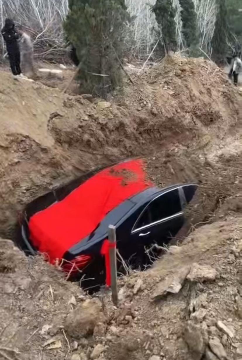 有钱人的世界,我们确实不能理解 一台全新的8888奔驰400用来陪葬!! 太