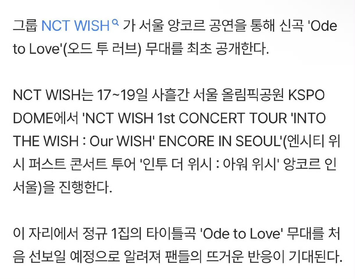 nctwish今日首尔安可演唱会首度公开主打曲 Ode to Love 舞台