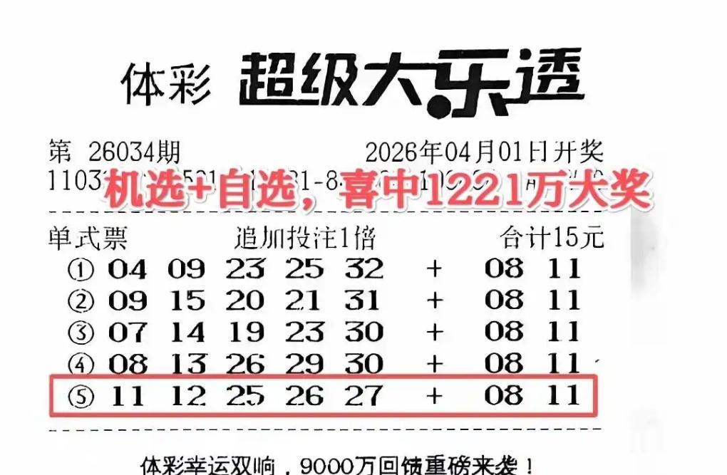 机选前区+自选后区,江苏徐州彩民凭15元彩票,拿下大乐透26034期追加头奖1221万!中奖者坦言,号码一半靠机选运气,一半凭自选眼光,恰好凑齐大奖密码,如今已顺利兑奖,属实是好运与巧思双在线。这运气真让人羡慕哦,