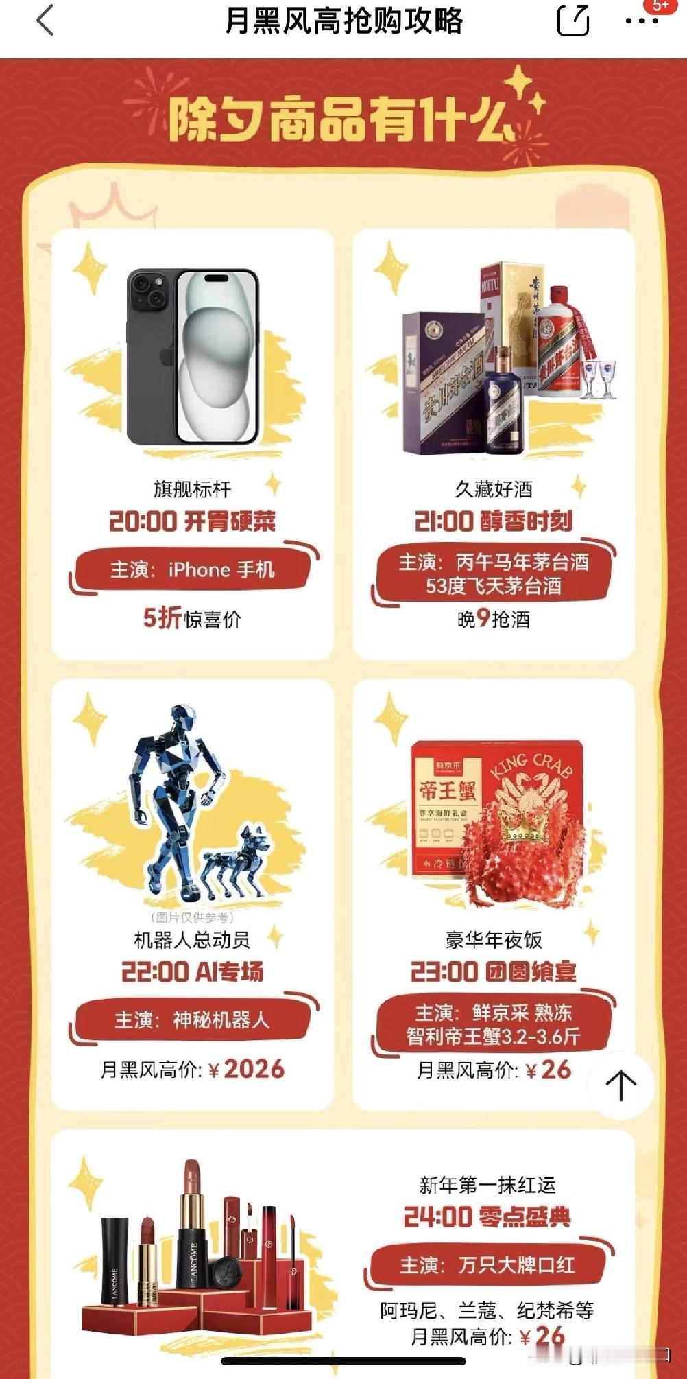 后续还有茅台、机器人、帝王蟹、口红接力放送,30亿红包全程加持。