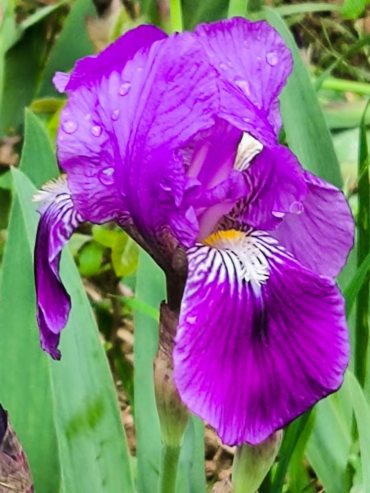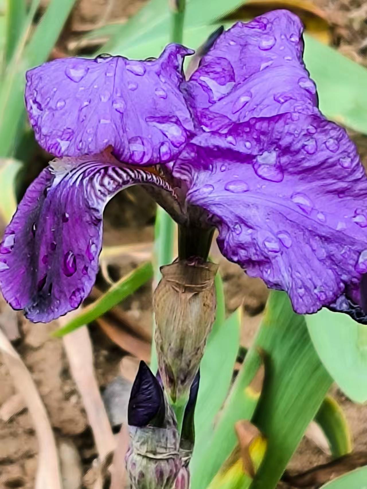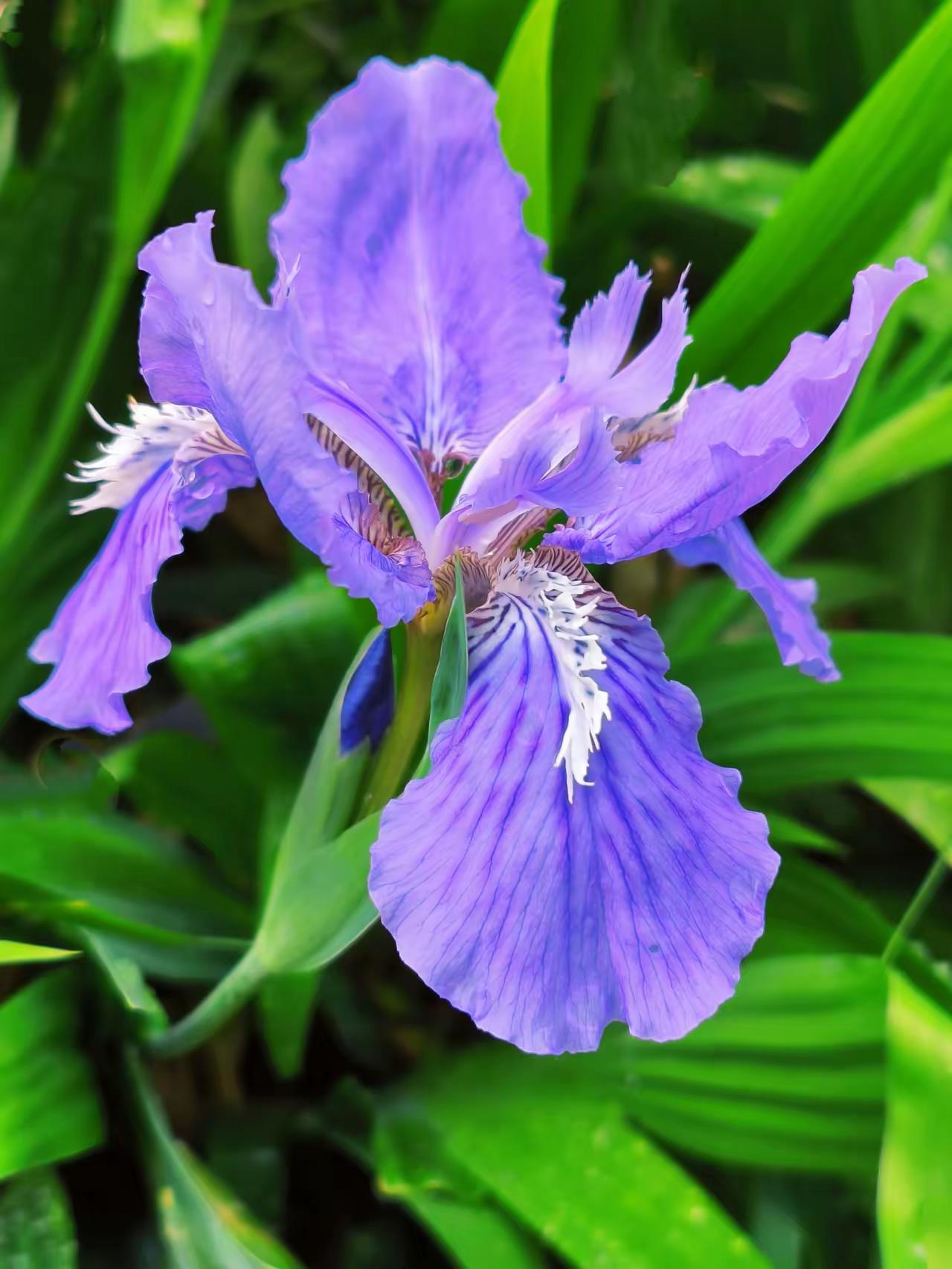 雨后的紫色鸢尾花,花瓣上还挂着晶莹的水珠,在微风中轻轻摇曳,仿佛一群紫色的蝴蝶在翩翩起舞。那抹紫色,在雨后的清新空气中显得格外耀眼,像是一幅生动的画卷,让人忍不住驻足观赏。