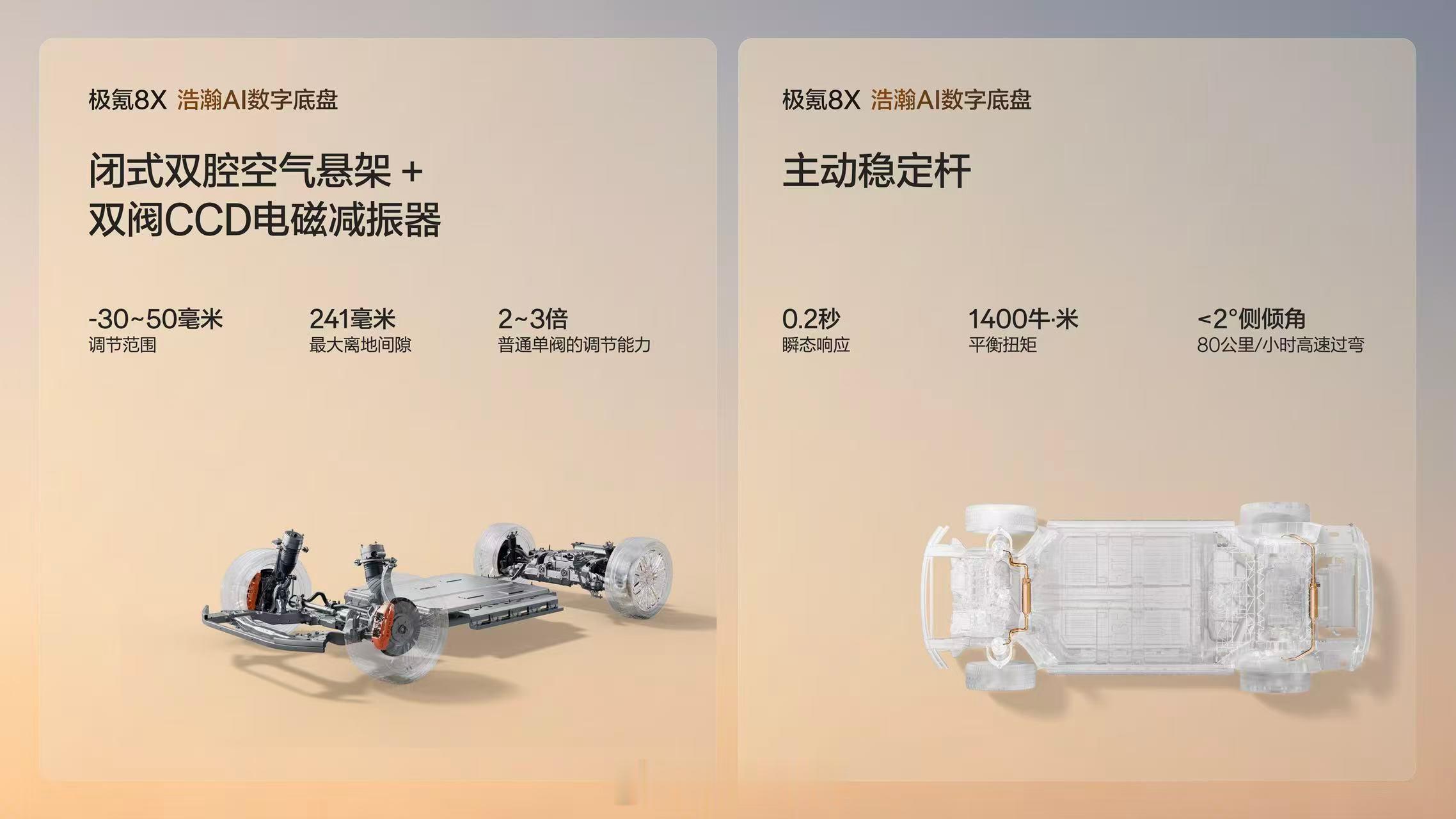 极氪8X 重新定义新能源时代性能旗舰混动领域首个三电机「兆瓦电驱」2.0T 超级电混专用发动机同级最高功率增程发电机实现全速度动力全面领先!新公路之王极氪8X正式上市极氪8X 搭载行业首个4S级浩瀚AI数字底盘 同级唯一的闭式双腔空气悬架双阀CCD电磁减振系统 和百万性能车才有的主动稳定杆 实现征服全地形的最强操稳 !新公路之王极氪8X正式上市