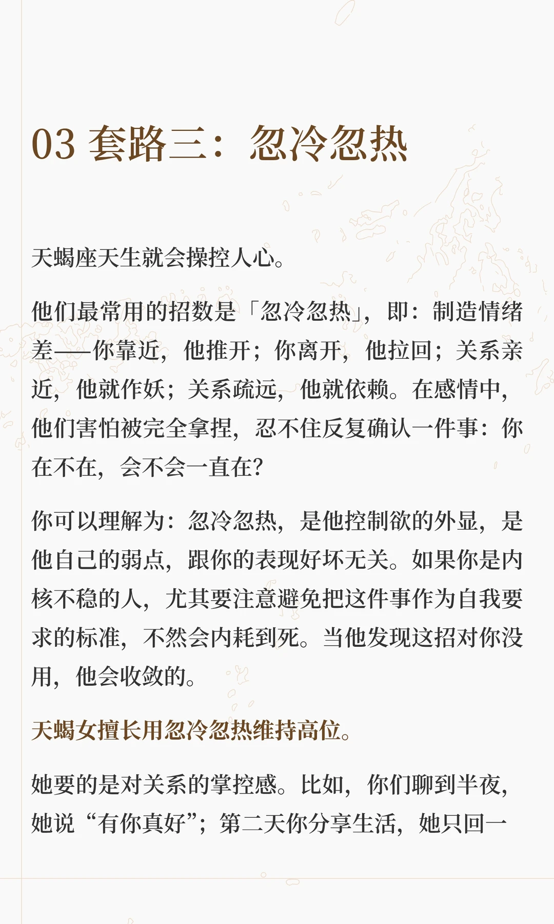 如果你想要攻略天蝎座,先要学会识破他们的千层套路。请相信,在他们重重设防之下,藏着一颗渴望爱的真心。