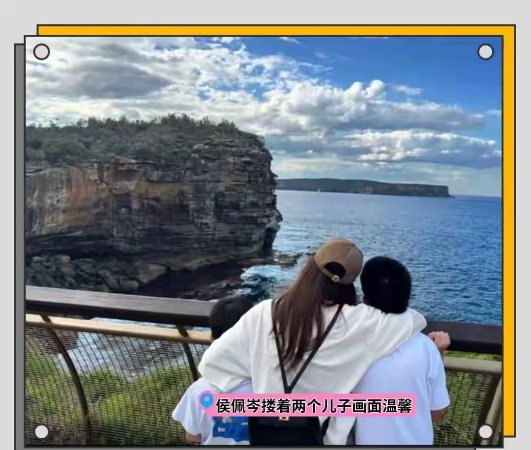 侯佩岑晒度假照,搂着俩儿子画面温馨,与老公复刻结婚时拍照姿势