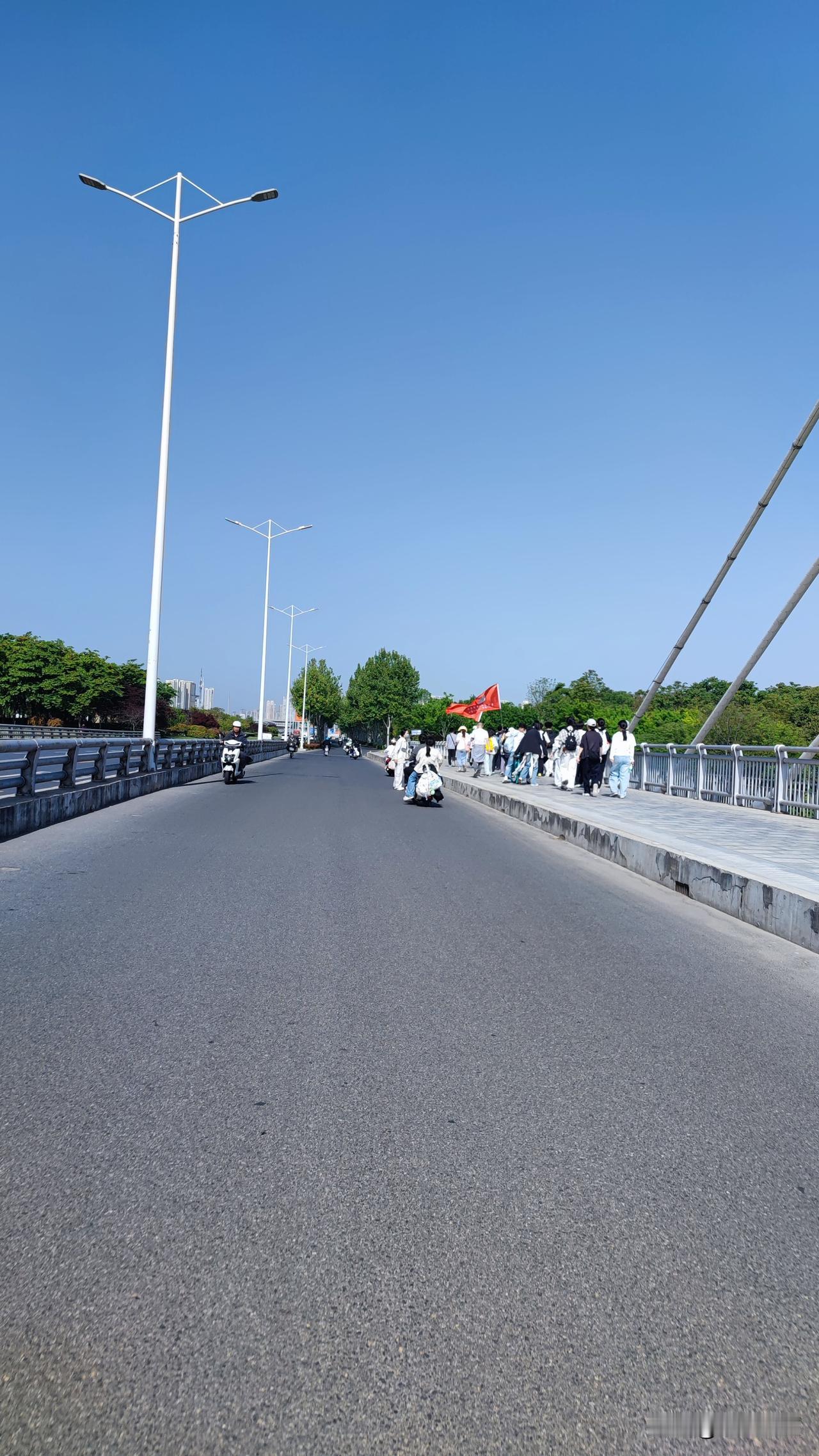 今天再走到郑州市北龙湖市,就看到了北三环上远足旅行的学生们。